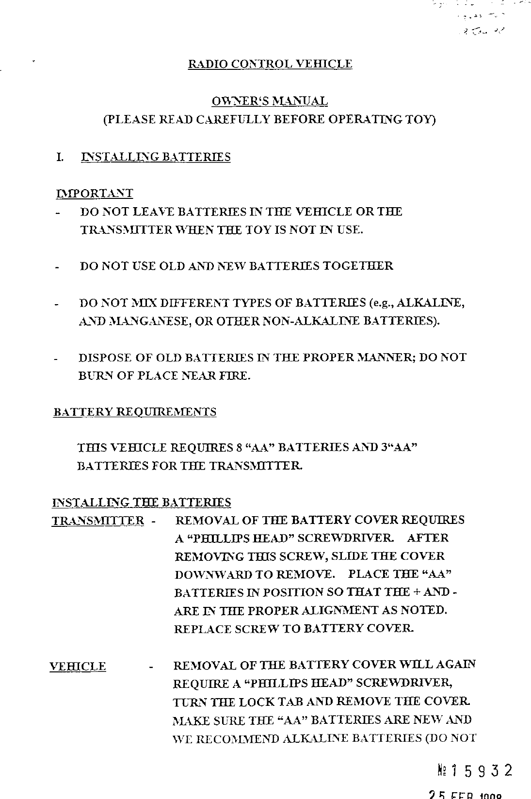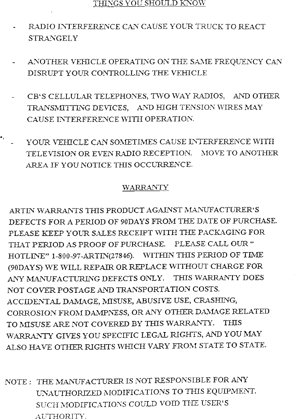Artin Co 47688A RC Toy Transmitter User Manual 53412
