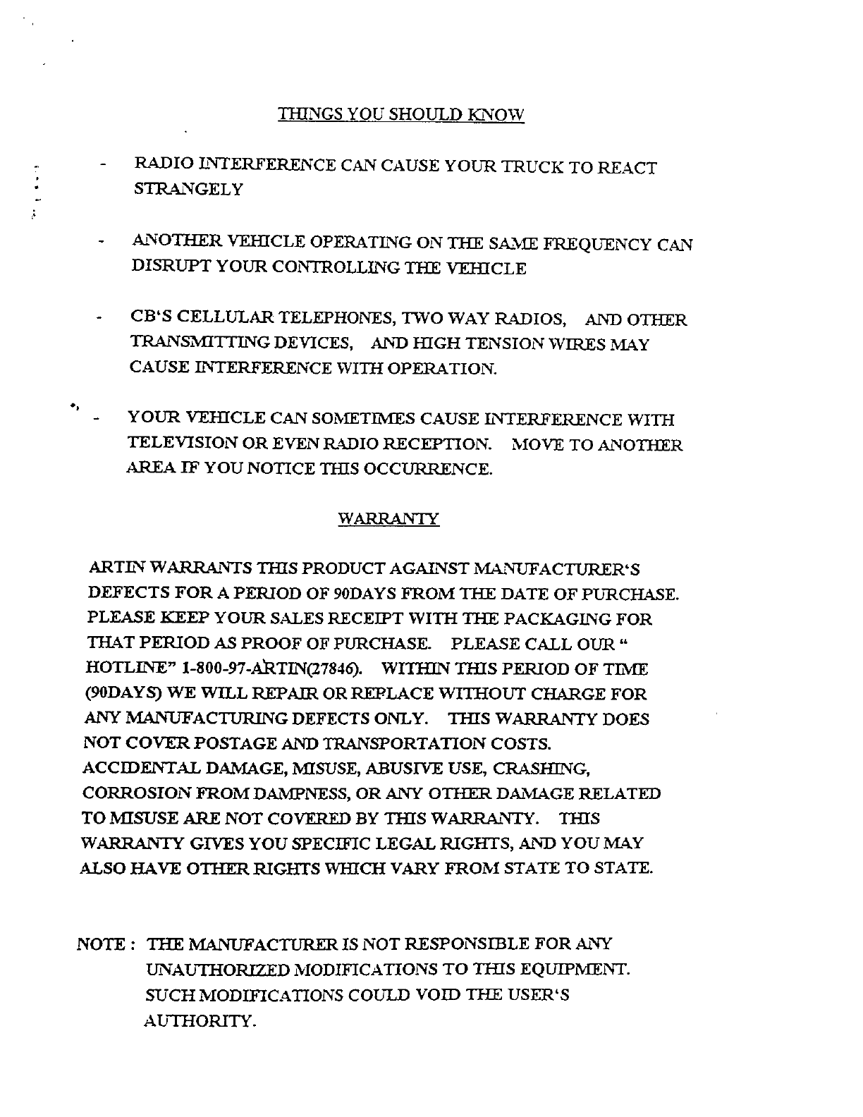Artin Co 47688R R\C Toy Receiver User Manual 8
