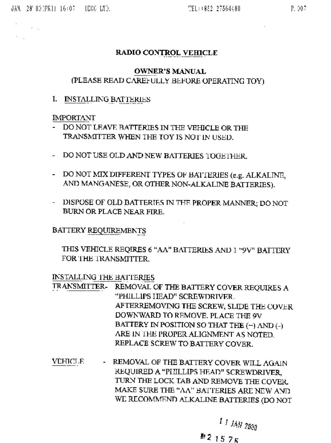 Artin Industrial Co Ltd R/C Toy Receiver page