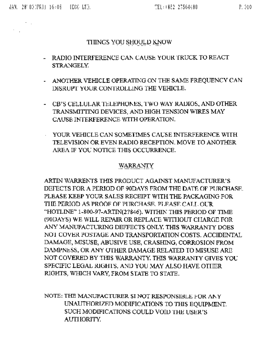 Artin Co 47830AR R/C Toy Receiver User Manual page