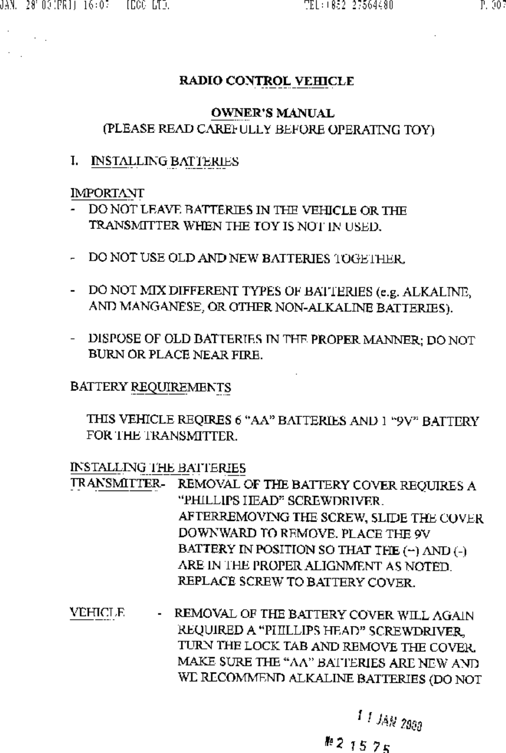 Artin Industrial Co Ltd R/C Toy Transmitter page