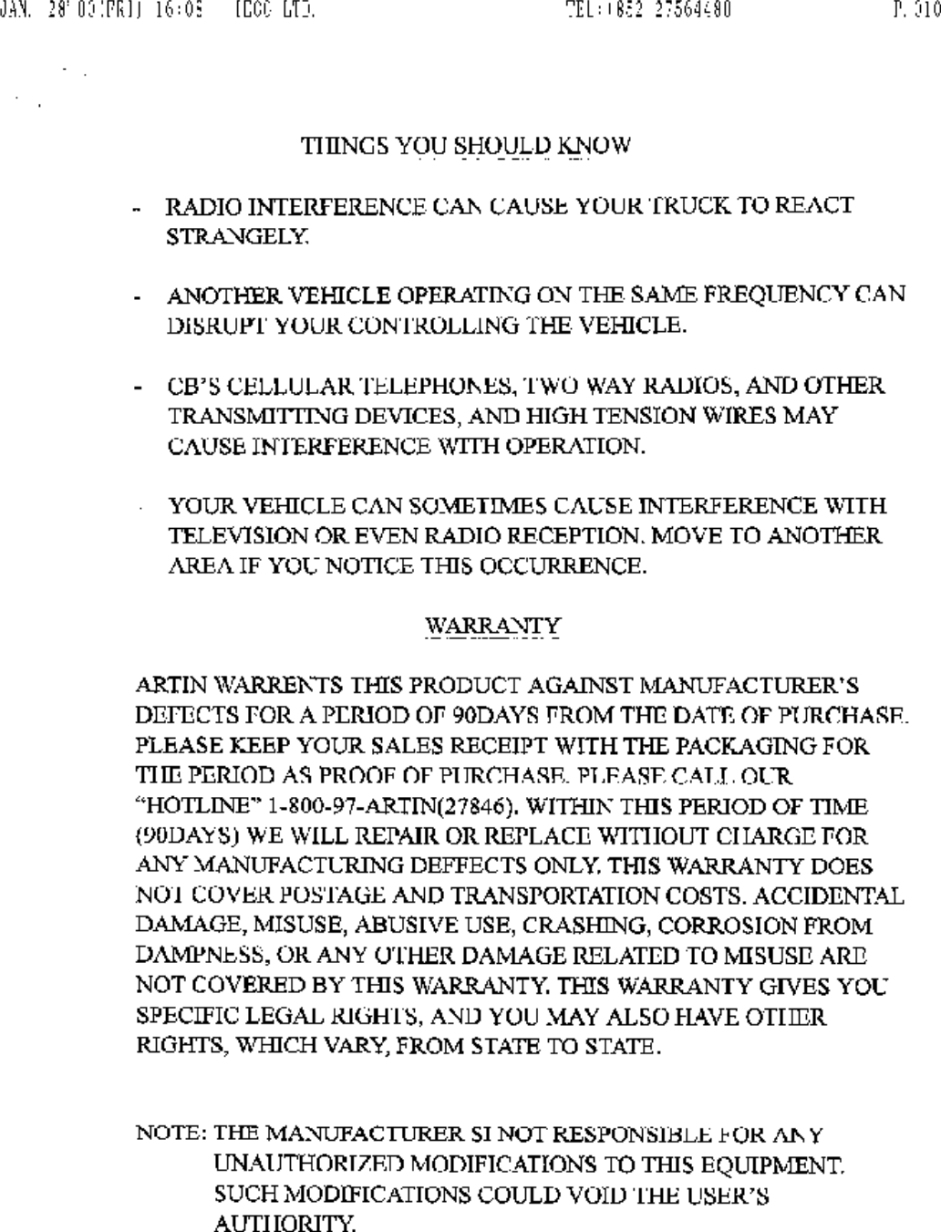 Artin Co 47830AT R/C Toy Transmitter User Manual page