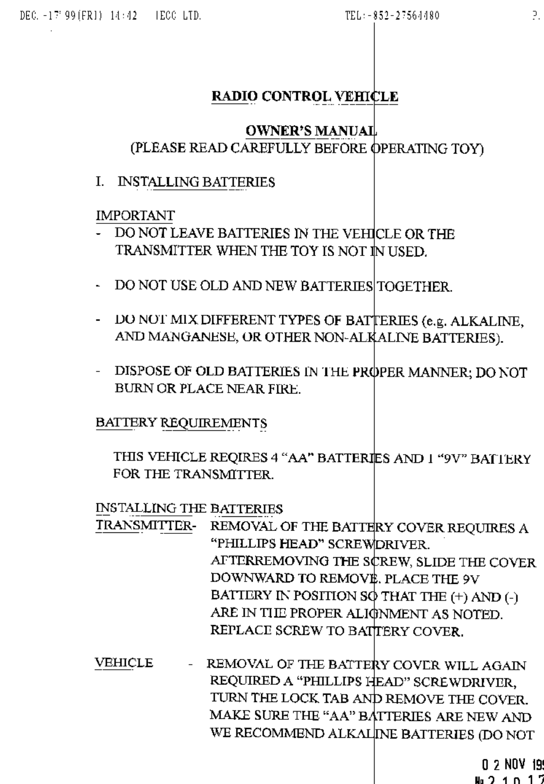 Artin Industrial Co Ltd R/C Toy Transmitter page