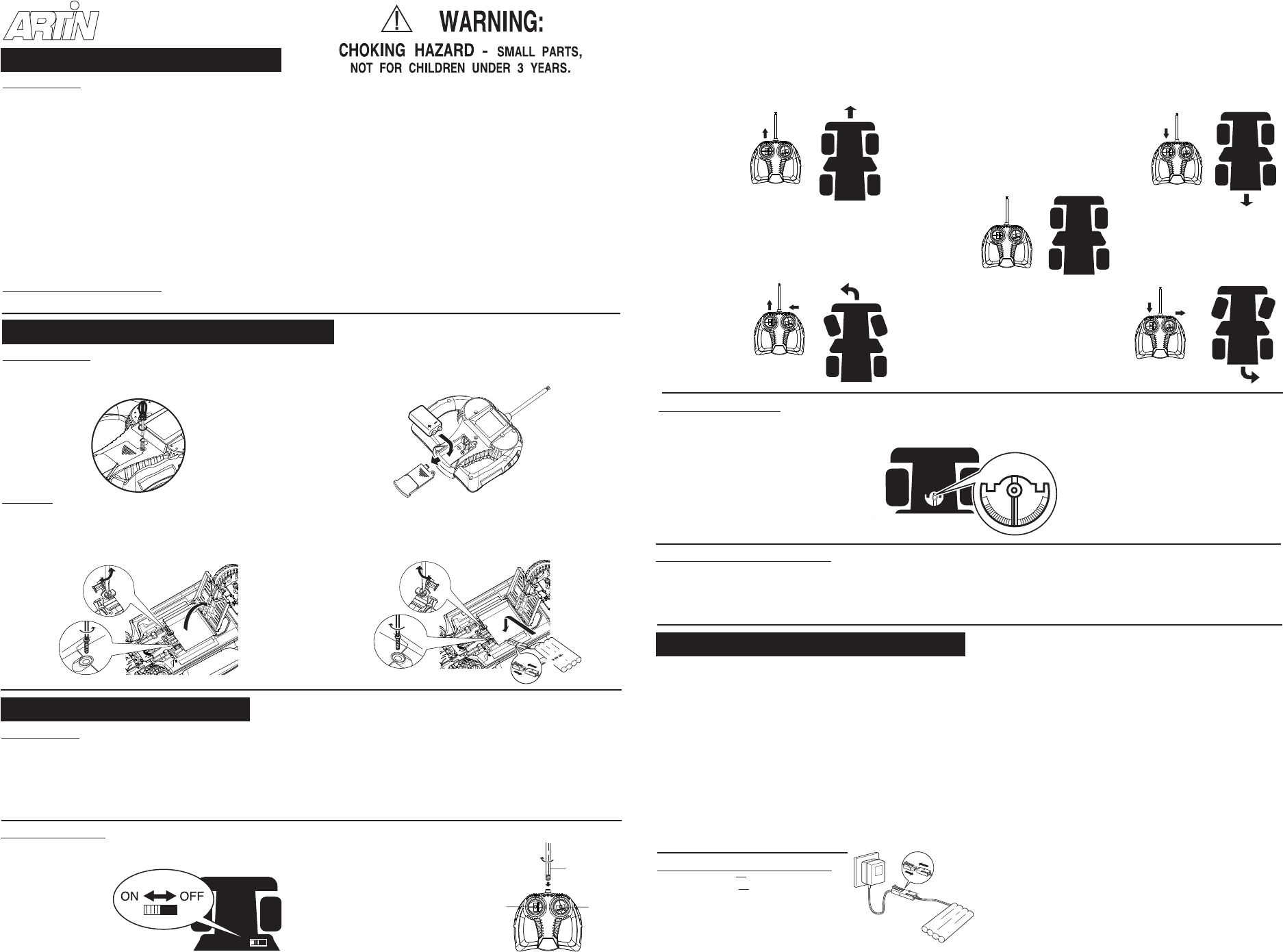 • Do not leave batteries in the vehicle or the transmitter when the toy is not in use.