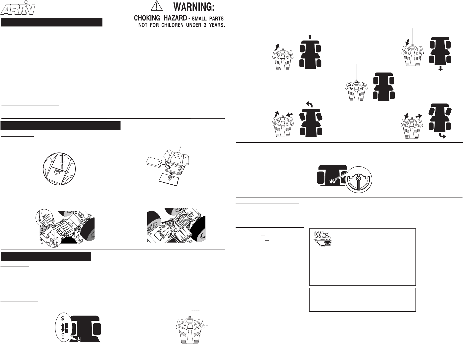 • Do not leave batteries in the vehicle or the transmitter when the toy is not in use.