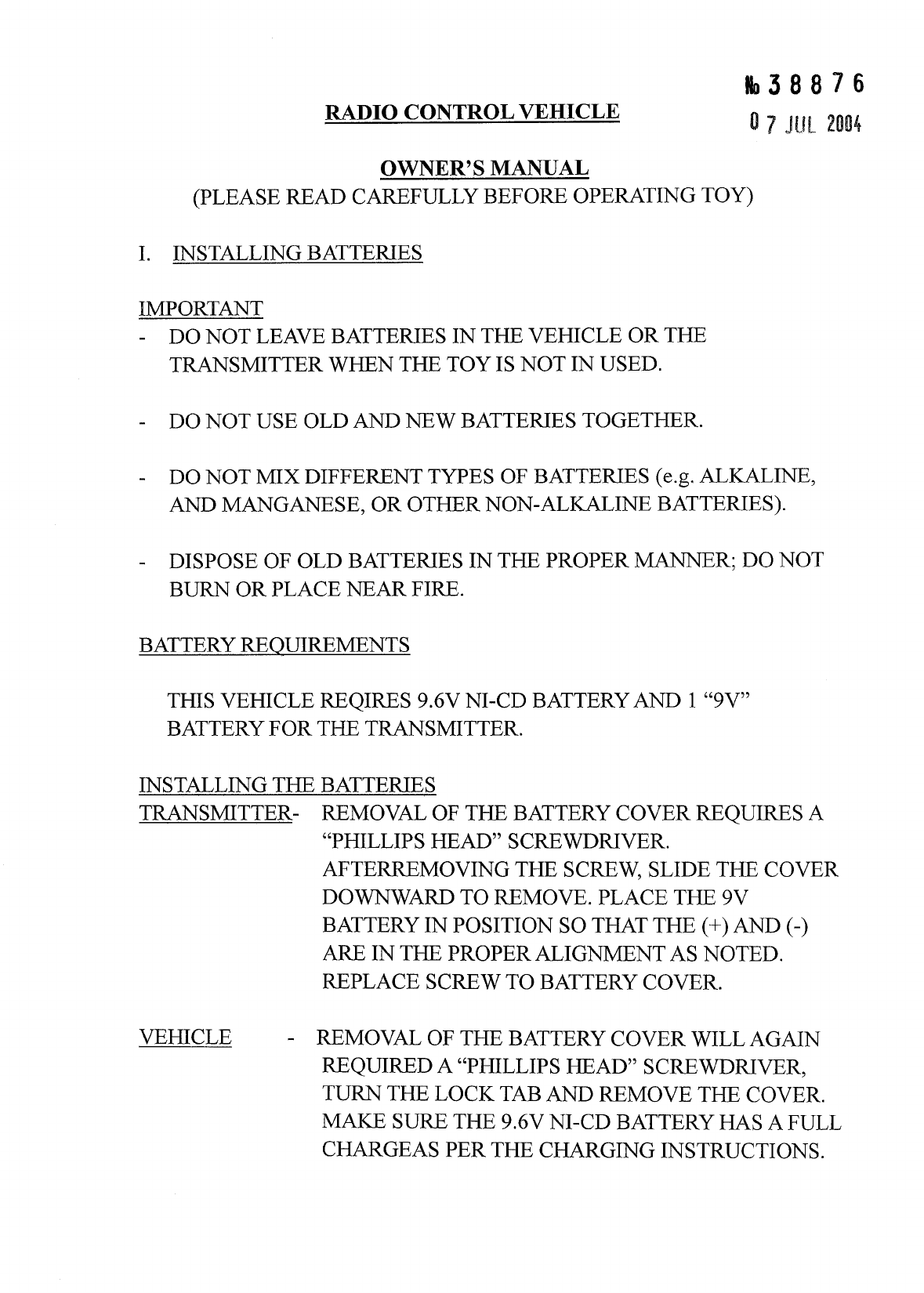 Artin Industrial Co Ltd 27MHz RADIO CONTROL TRANSMITTER USERS MANUAL