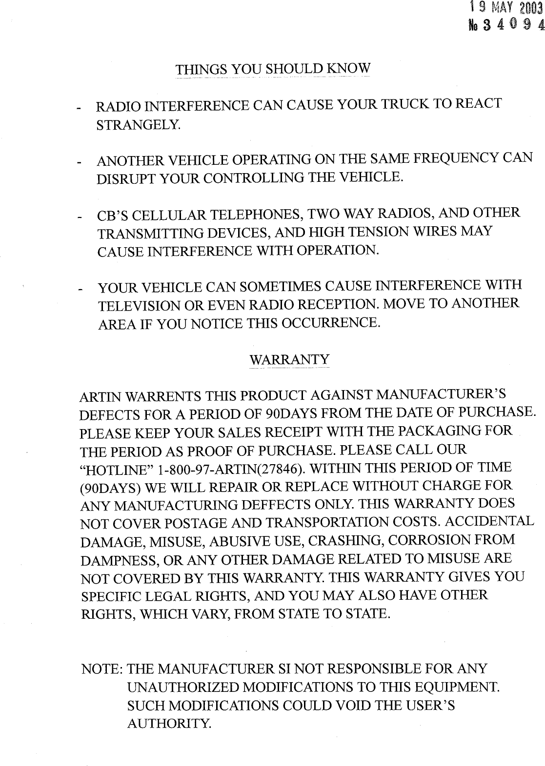 Artin Co 746004R Remote Control Receiver User Manual USERS MANUAL