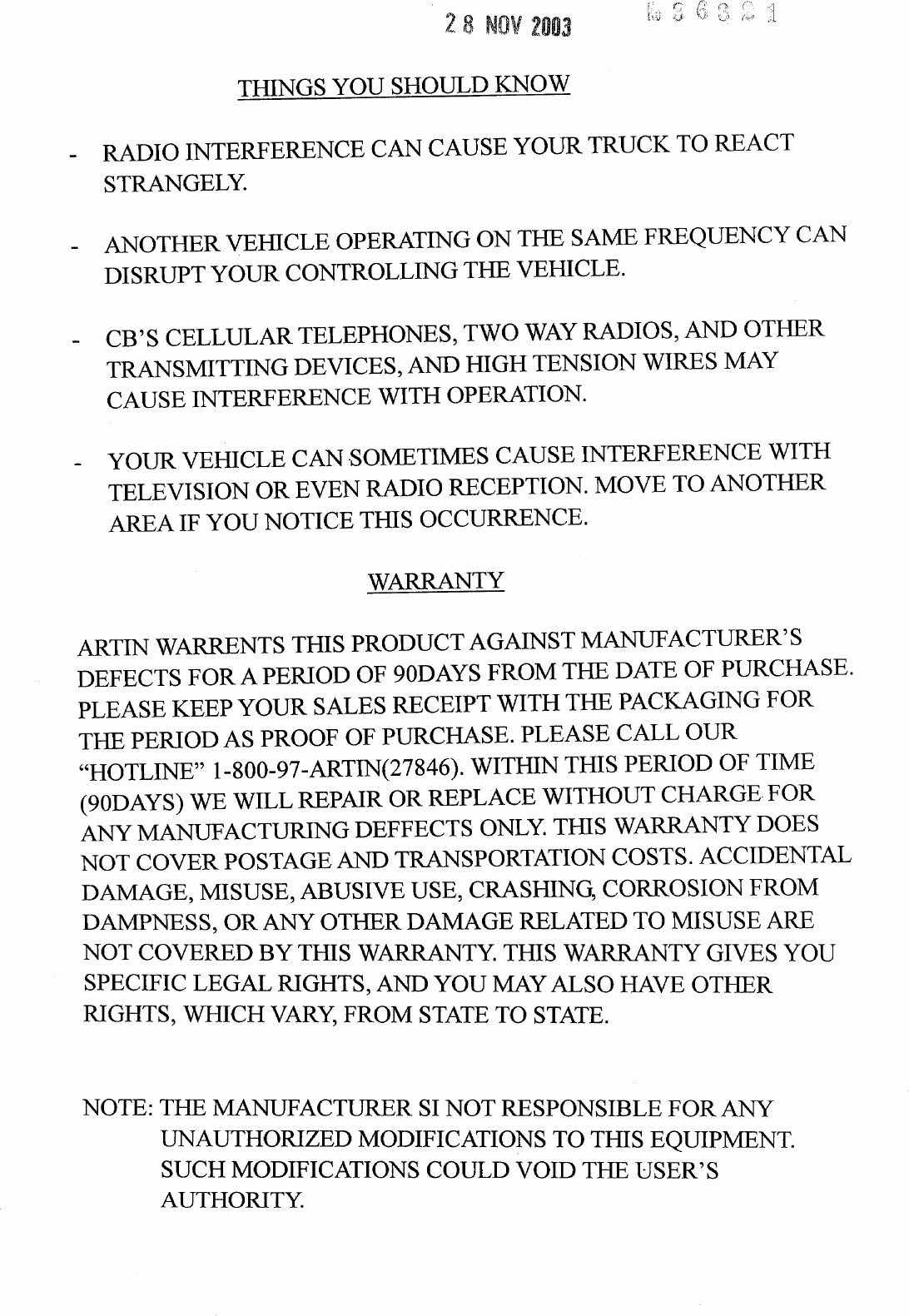 Artin Co 764003R 49MHz REMOTE CONTROL RECEIVER User Manual USERS MANUAL