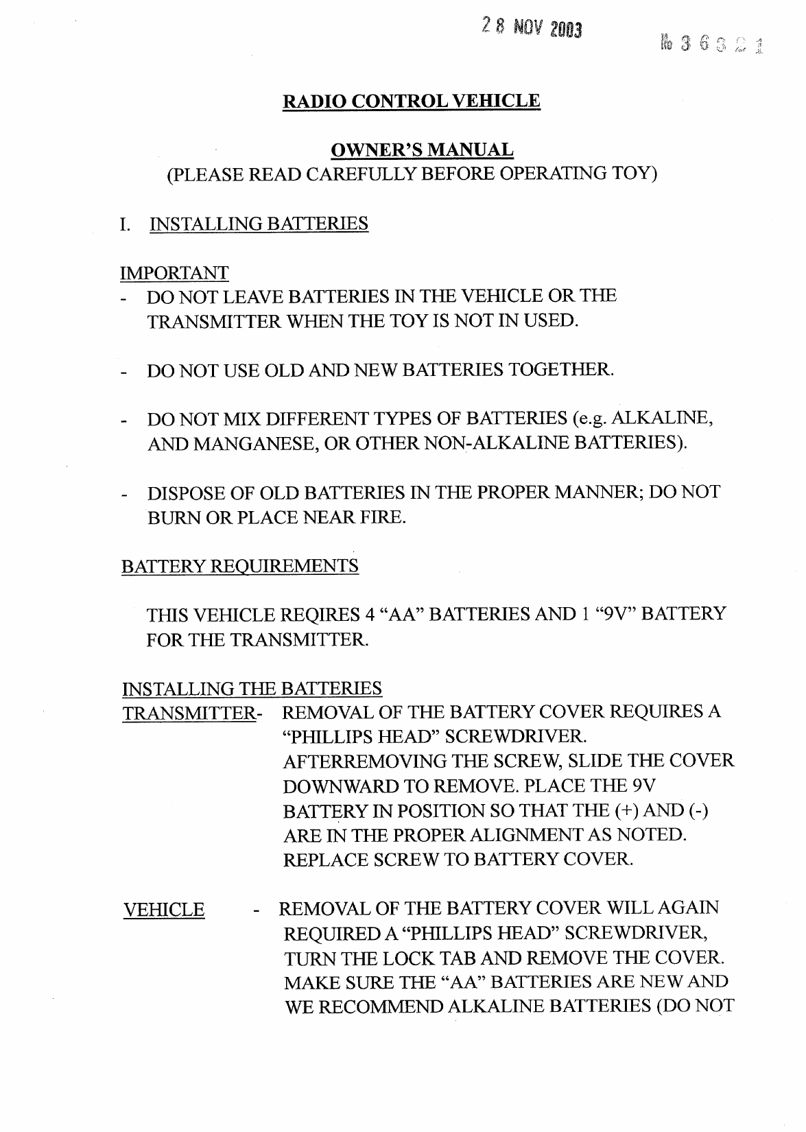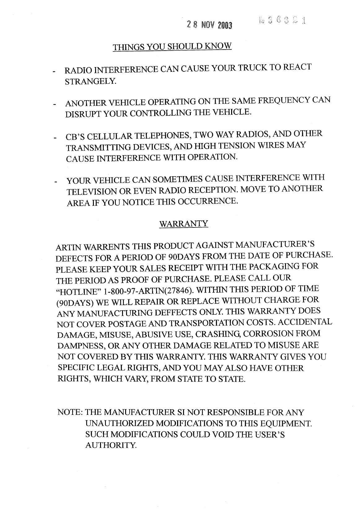 Artin Co 764003R 49MHz REMOTE CONTROL RECEIVER User Manual USERS MANUAL