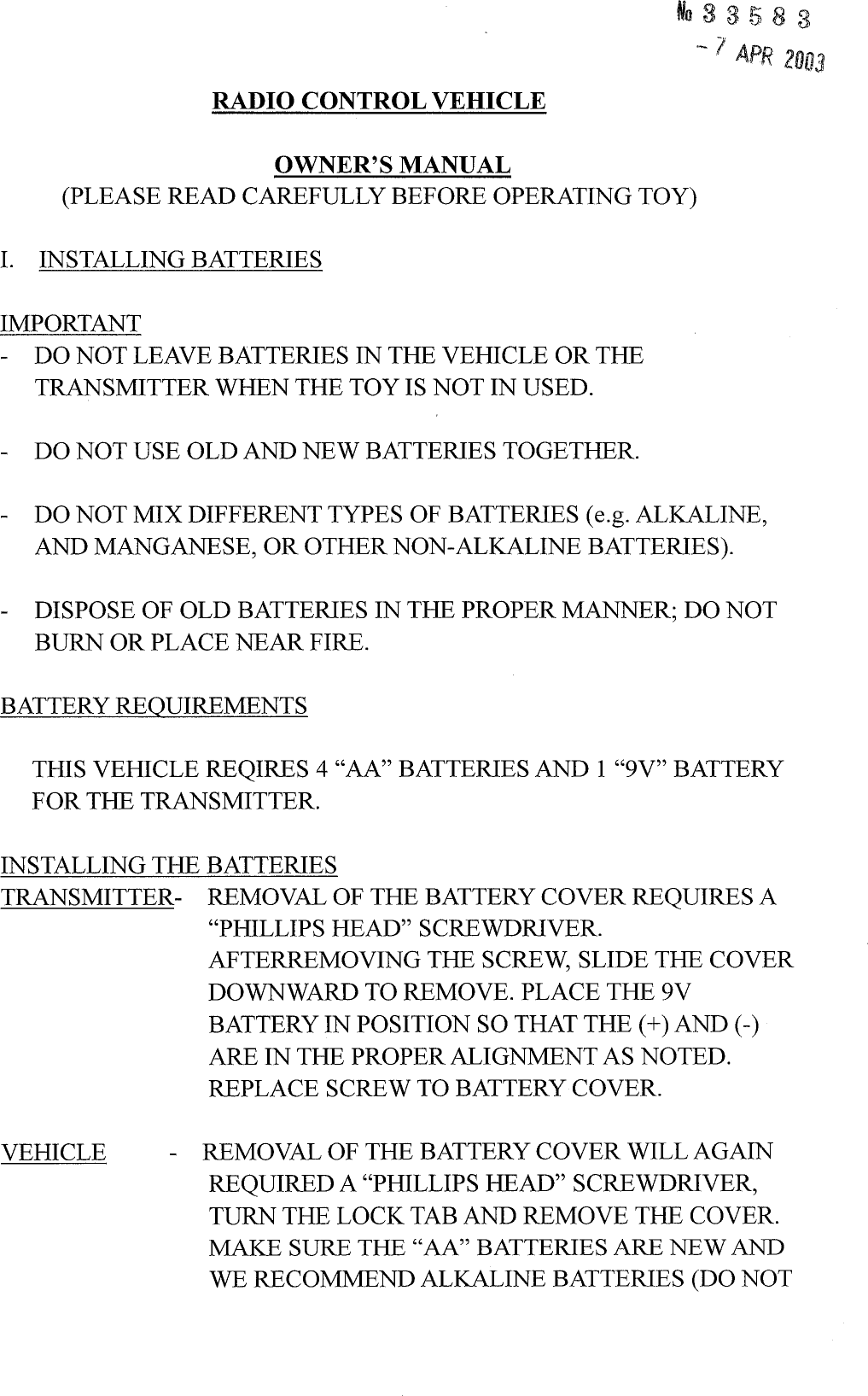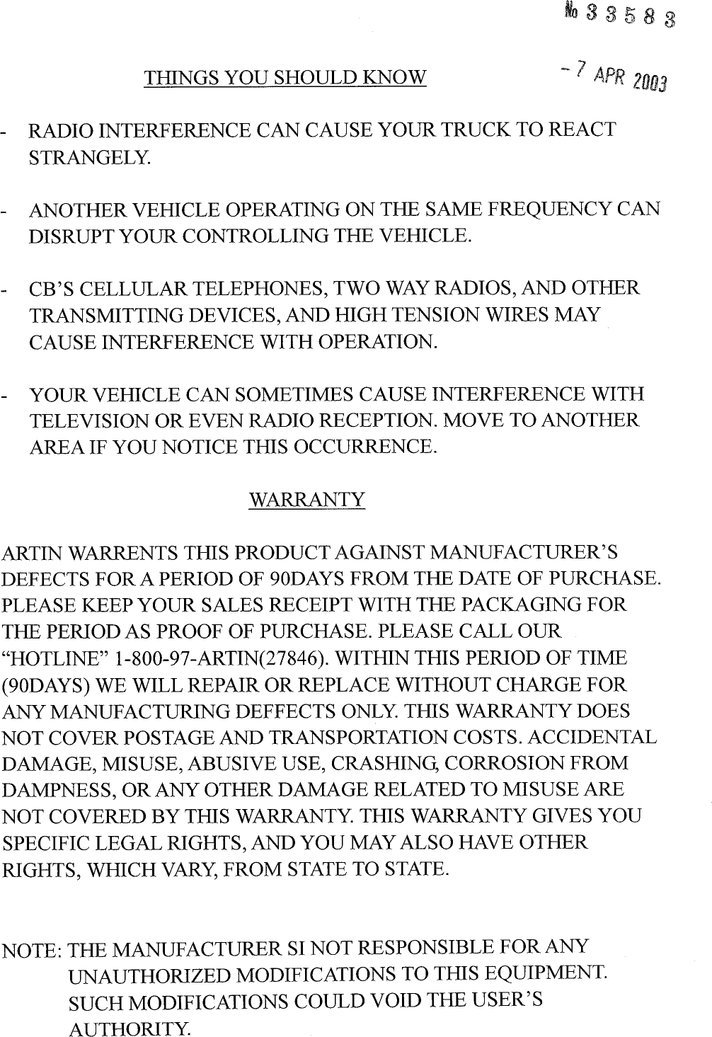 Artin Co 764016 Remote Control Transmitter User Manual users manual