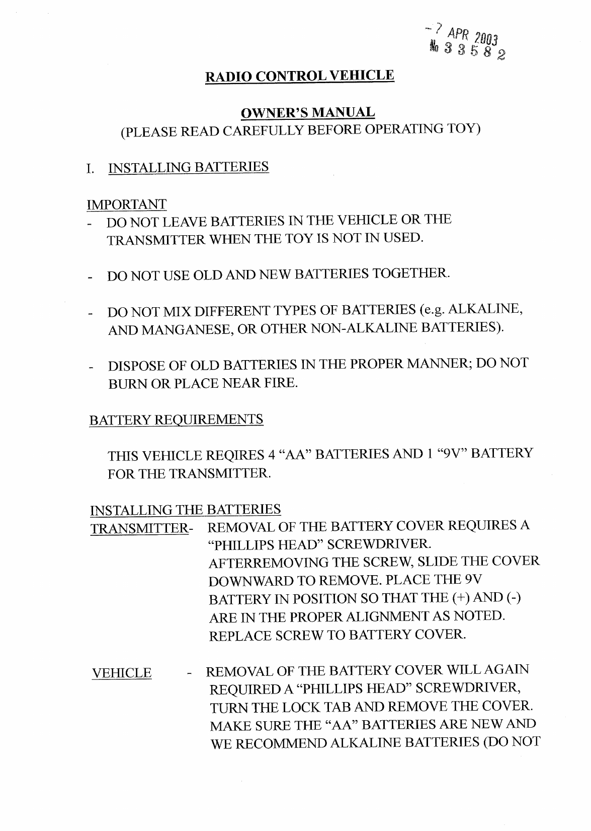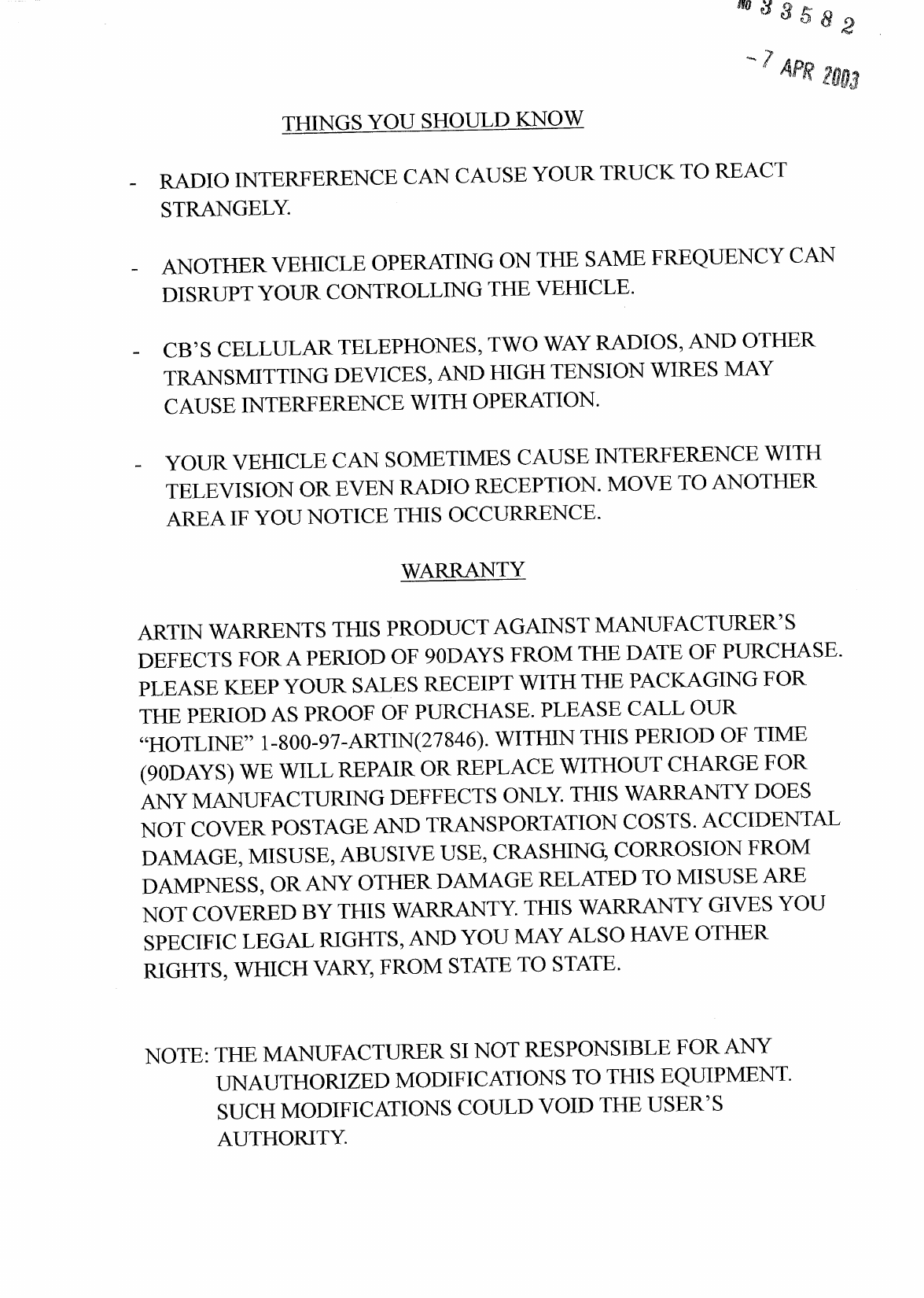 Artin Co 764016R Remote Control Receiver User Manual users manual