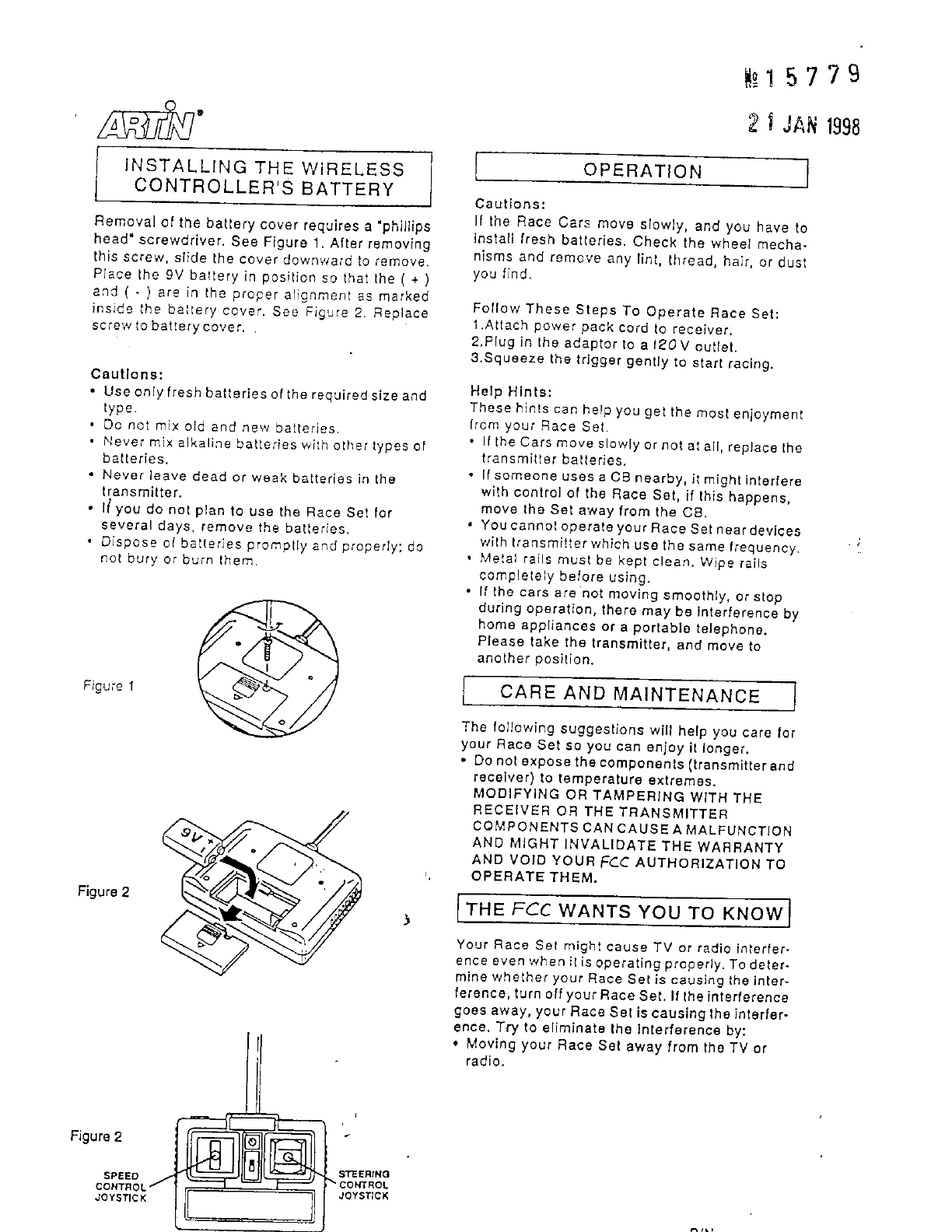Artin Co 9900 R/C Toy Transmitter User Manual 51262