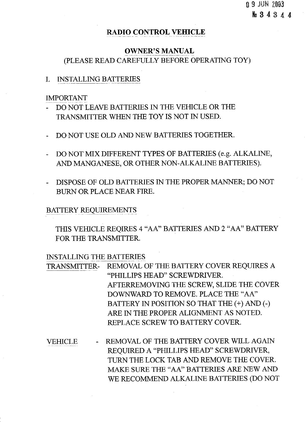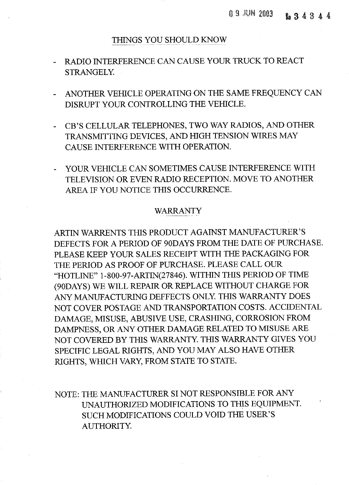 Artin Industrial Co Ltd 49MHz REMOTE CONTROL RECEIVER MANUAL