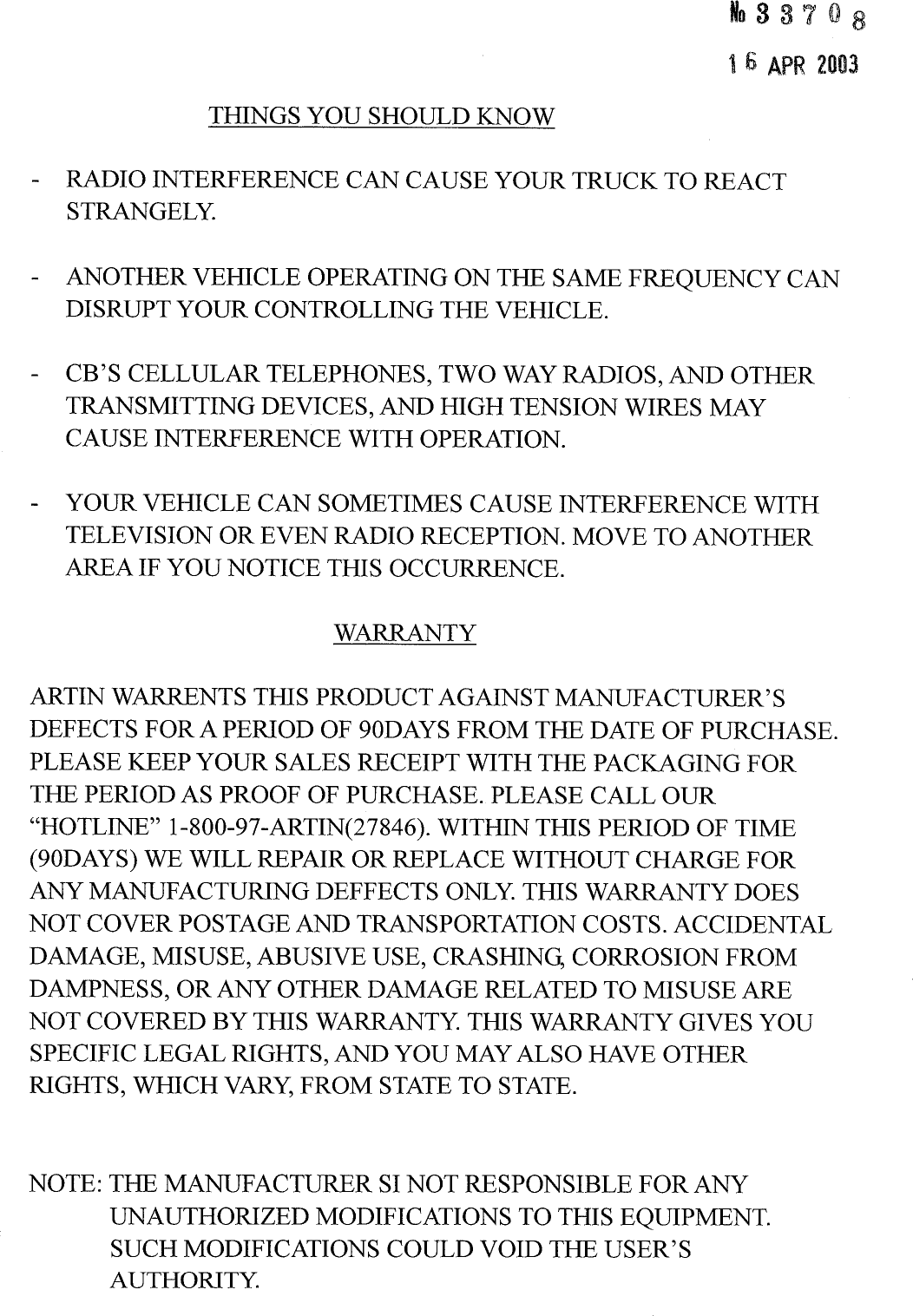 Artin Co S84002R Remote Control Receiver User Manual users manual