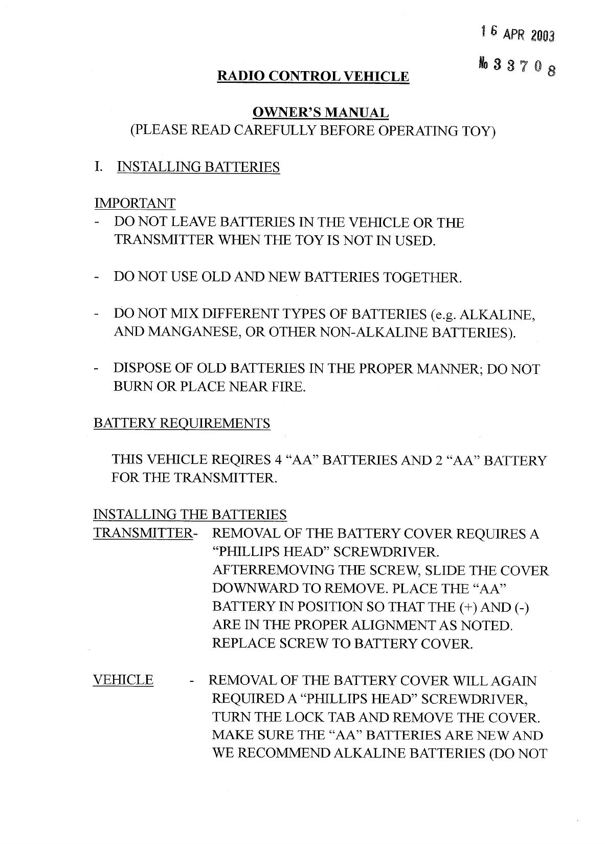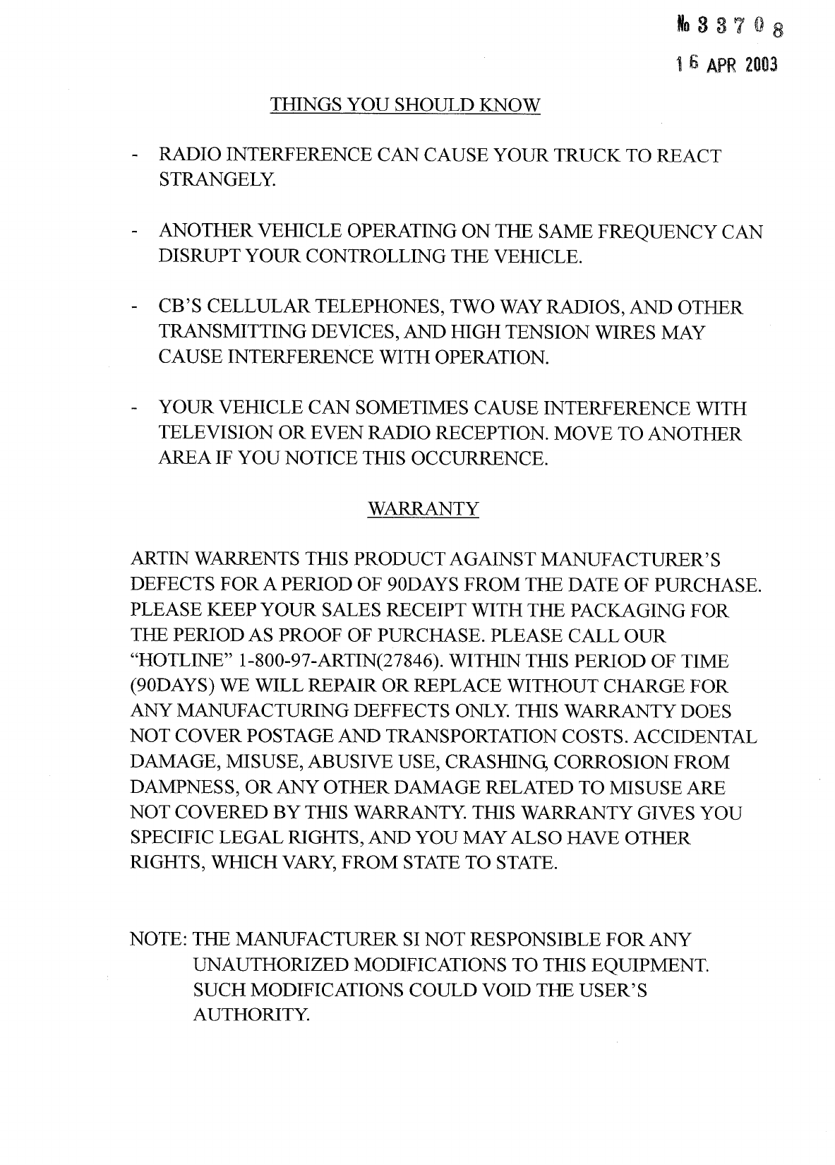 Artin Co S84002R Remote Control Receiver User Manual users manual