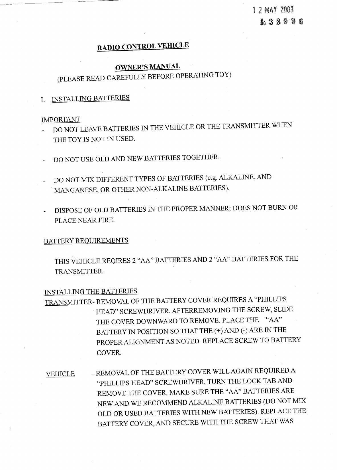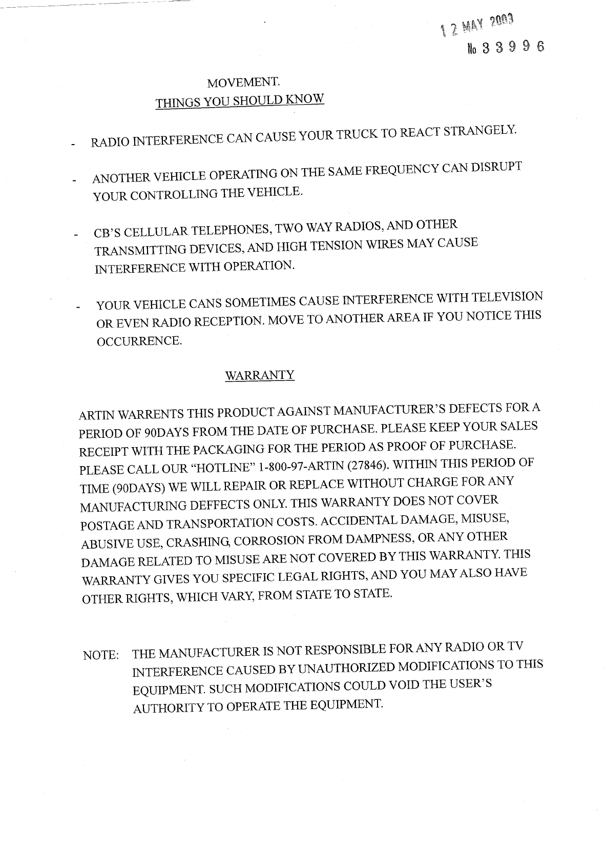 Artin Co S92003R Remote Control Receiver User Manual USERS MANUAL