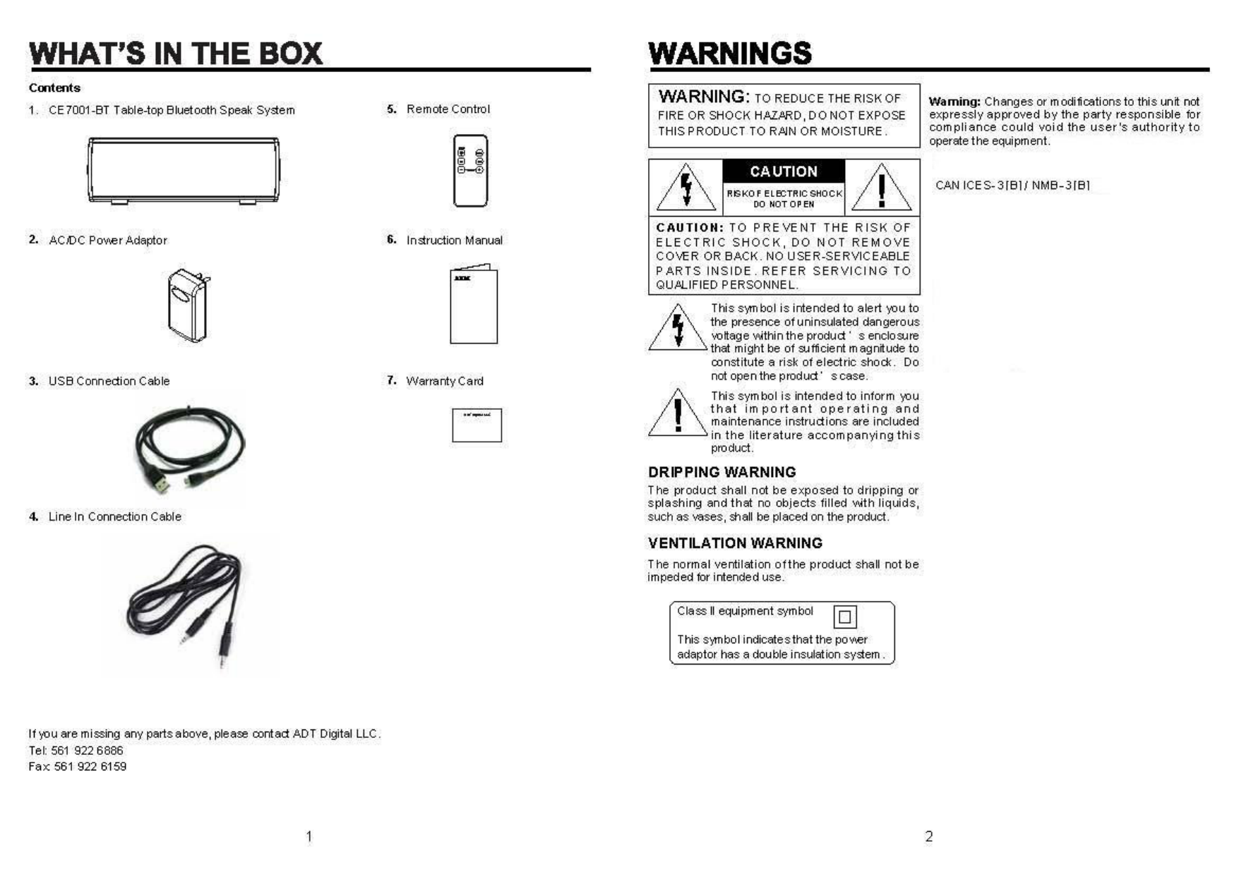Arts Digital Technology CE7001BT Table-Top Bluetooth Speaker System User Manual CE7001 BT IM English 20130817 preview