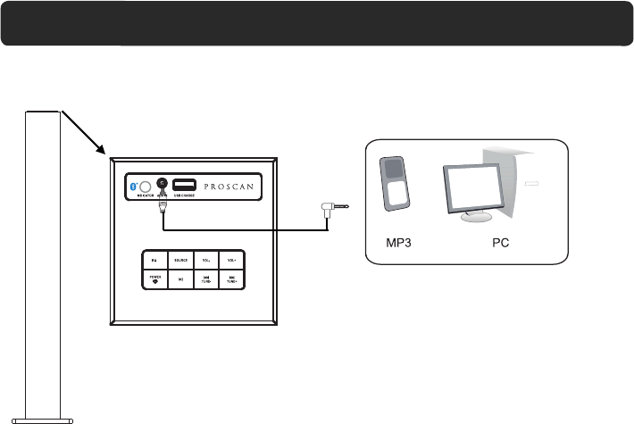 1. Connect one end of supplied audio connection cable to the AUX IN jack on the top of the unit