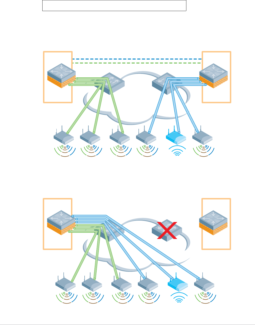 deployments, wireless redundancy is typically handled across the WAN link to the central data center