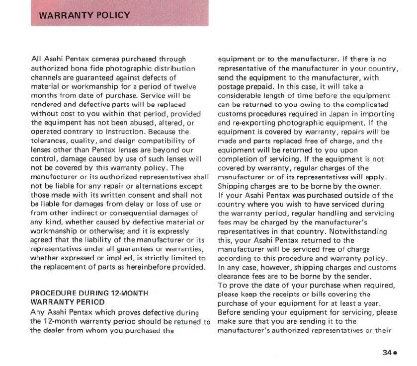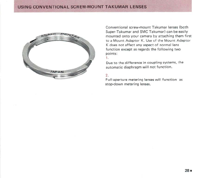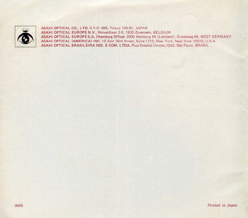 Asahi Pentax K 2 Instruction Manual K2 Owner's
