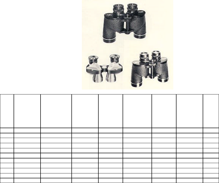 • The data about binoculars was left incomplete due to the volume of technical data to