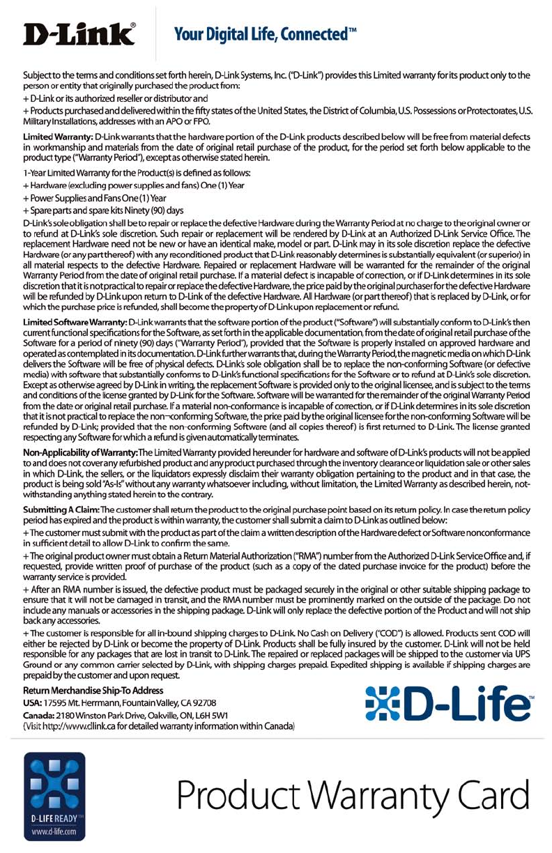 For detailed warranty outside the United States, please contact corresponding local D-Link office.