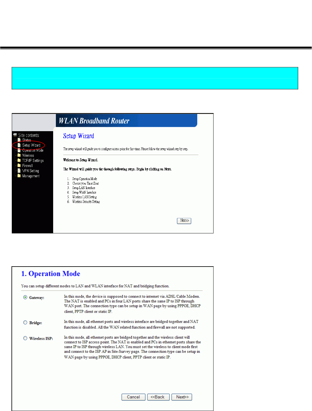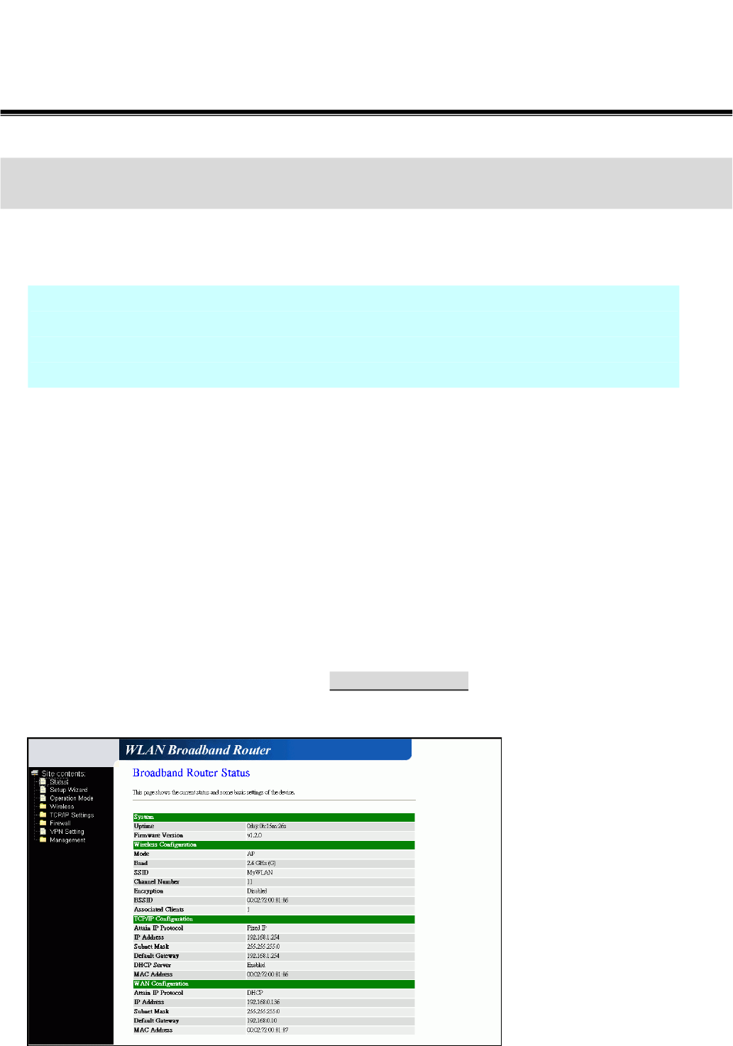 Please consult the user’s manual of WLAN Broadband Router for detailed and complete operation guide.