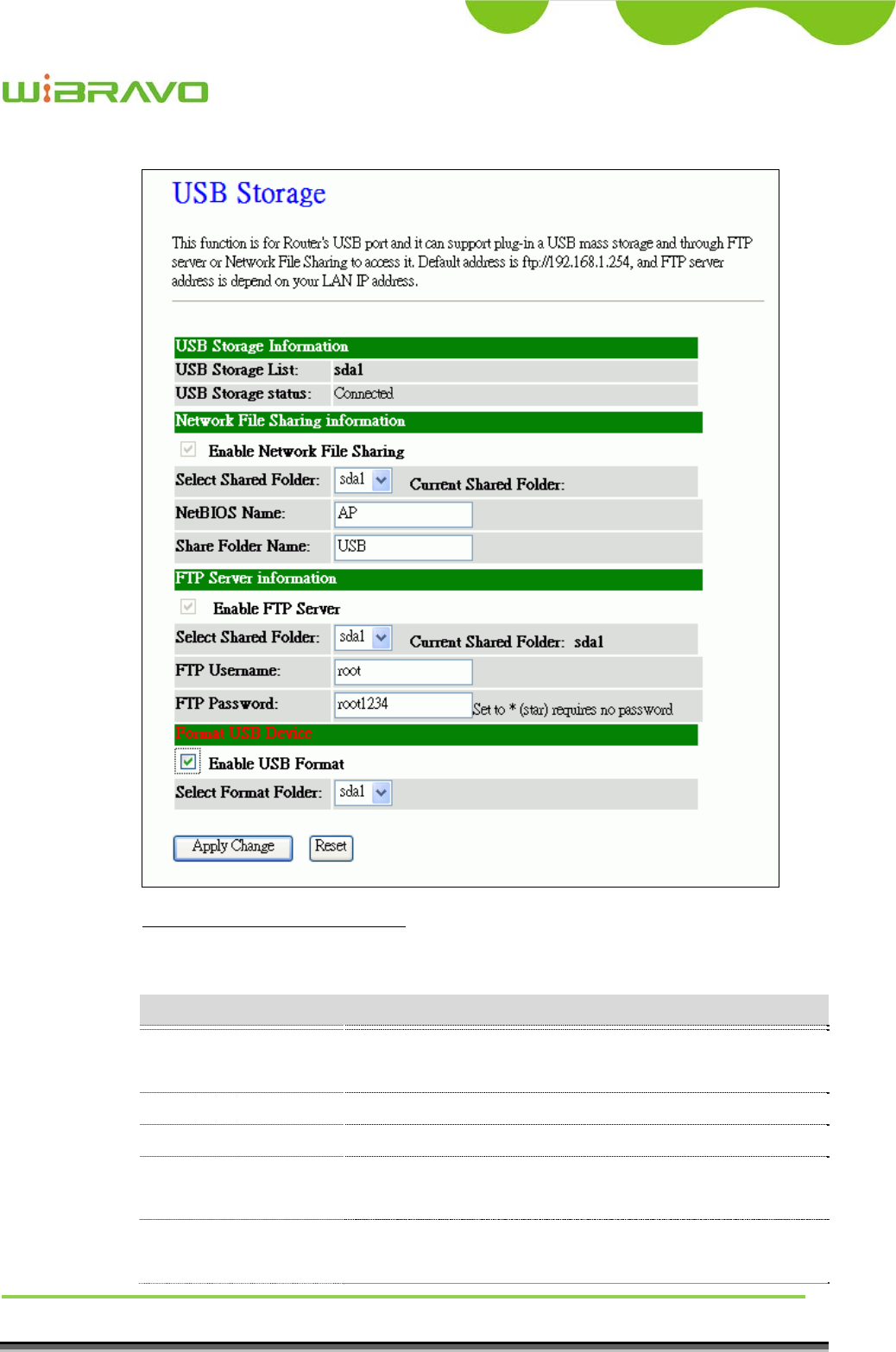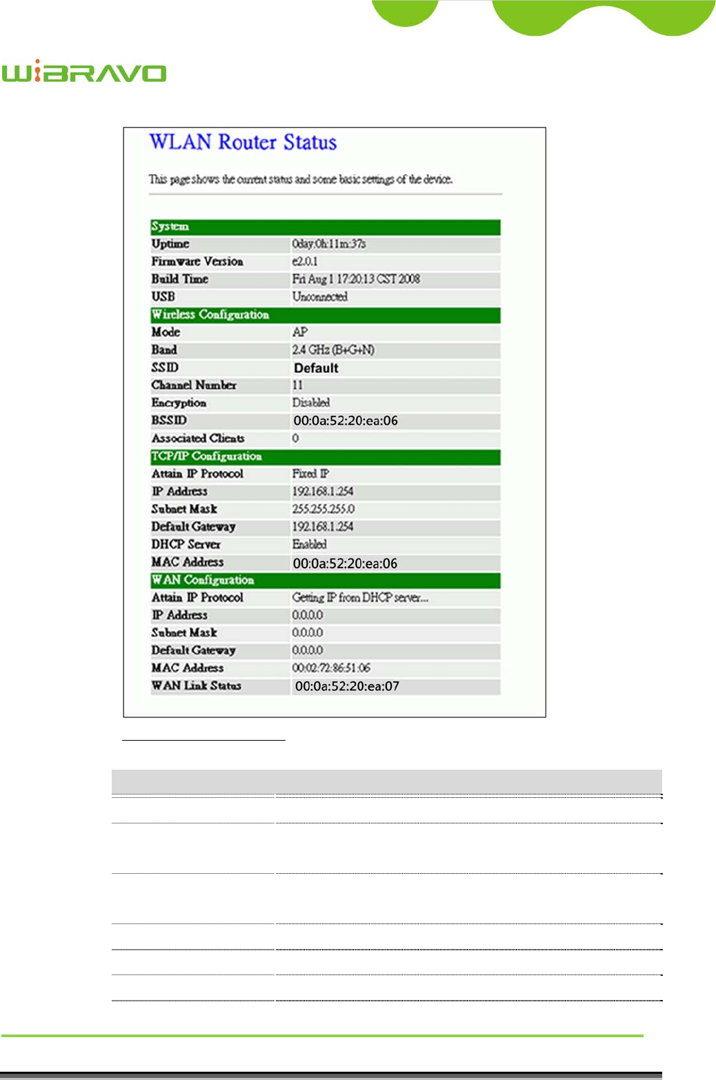WLAN Broadband Router implementation by the following configuration.