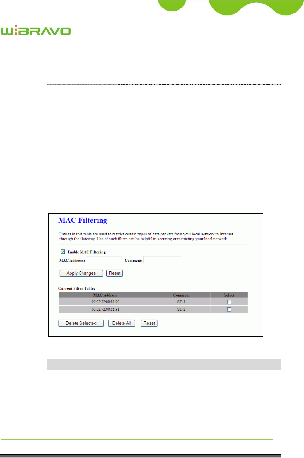 3.3.15Firewall - MAC Filtering ......................................................................................... 44
