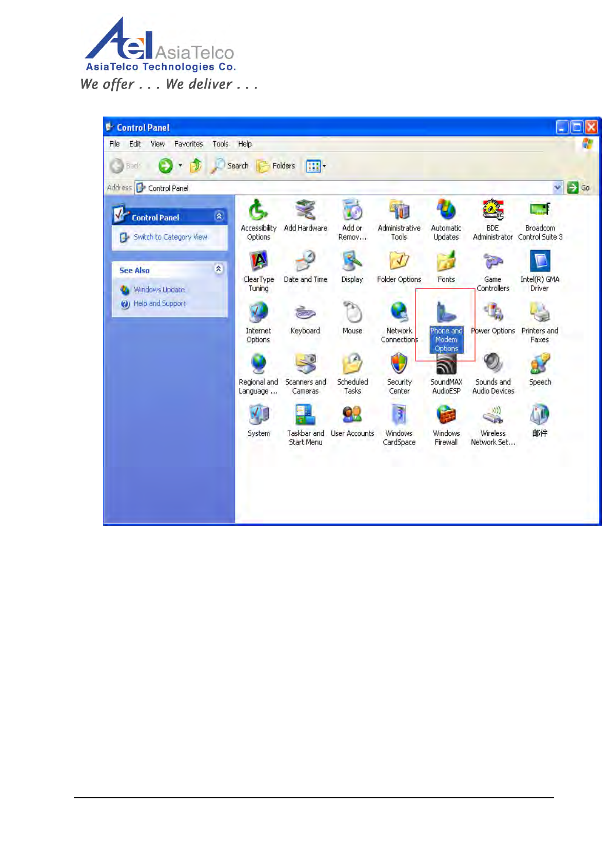 12.3 Enter the windows “Control Panel”-> “Phone and Modem Options” to Add