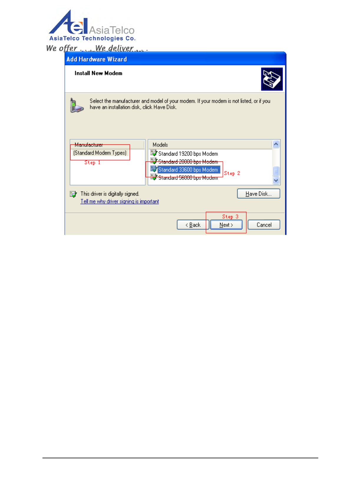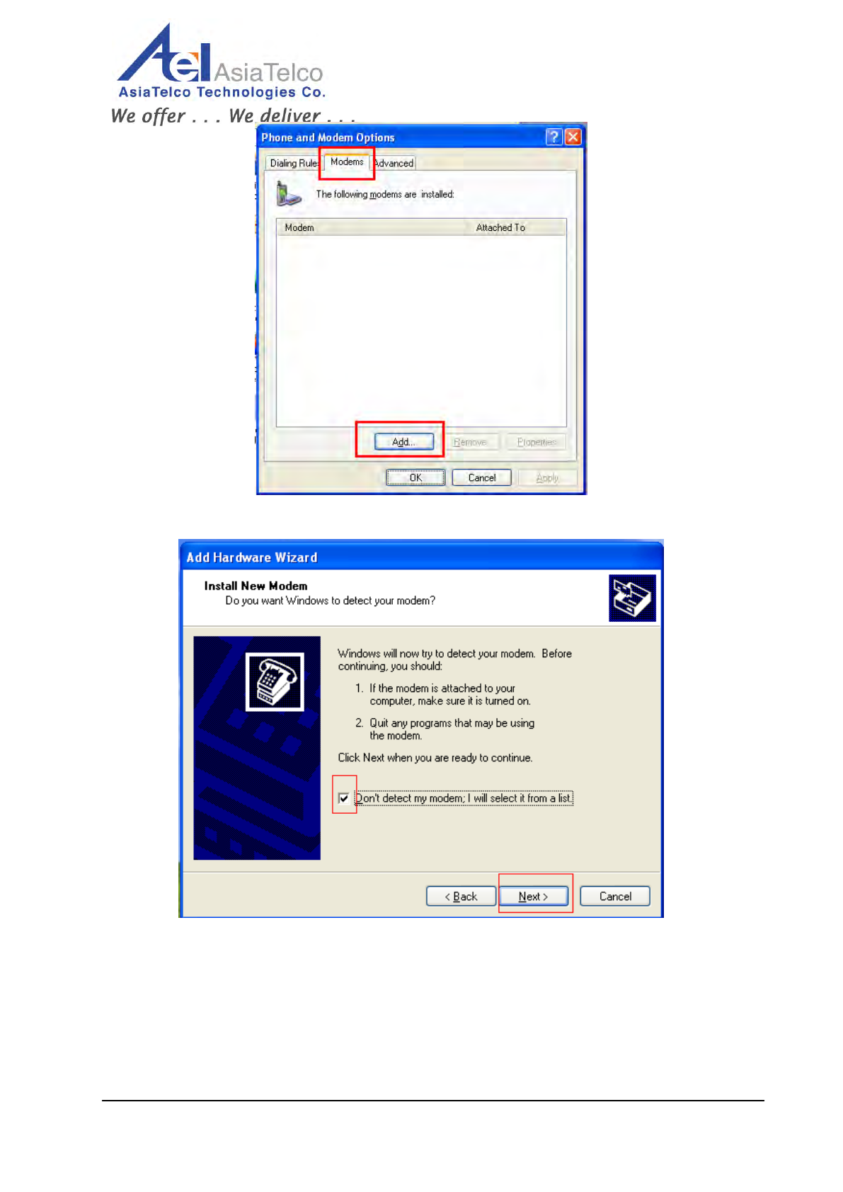 12.4 Select “Don’t detect my modem; I will select it from a list”