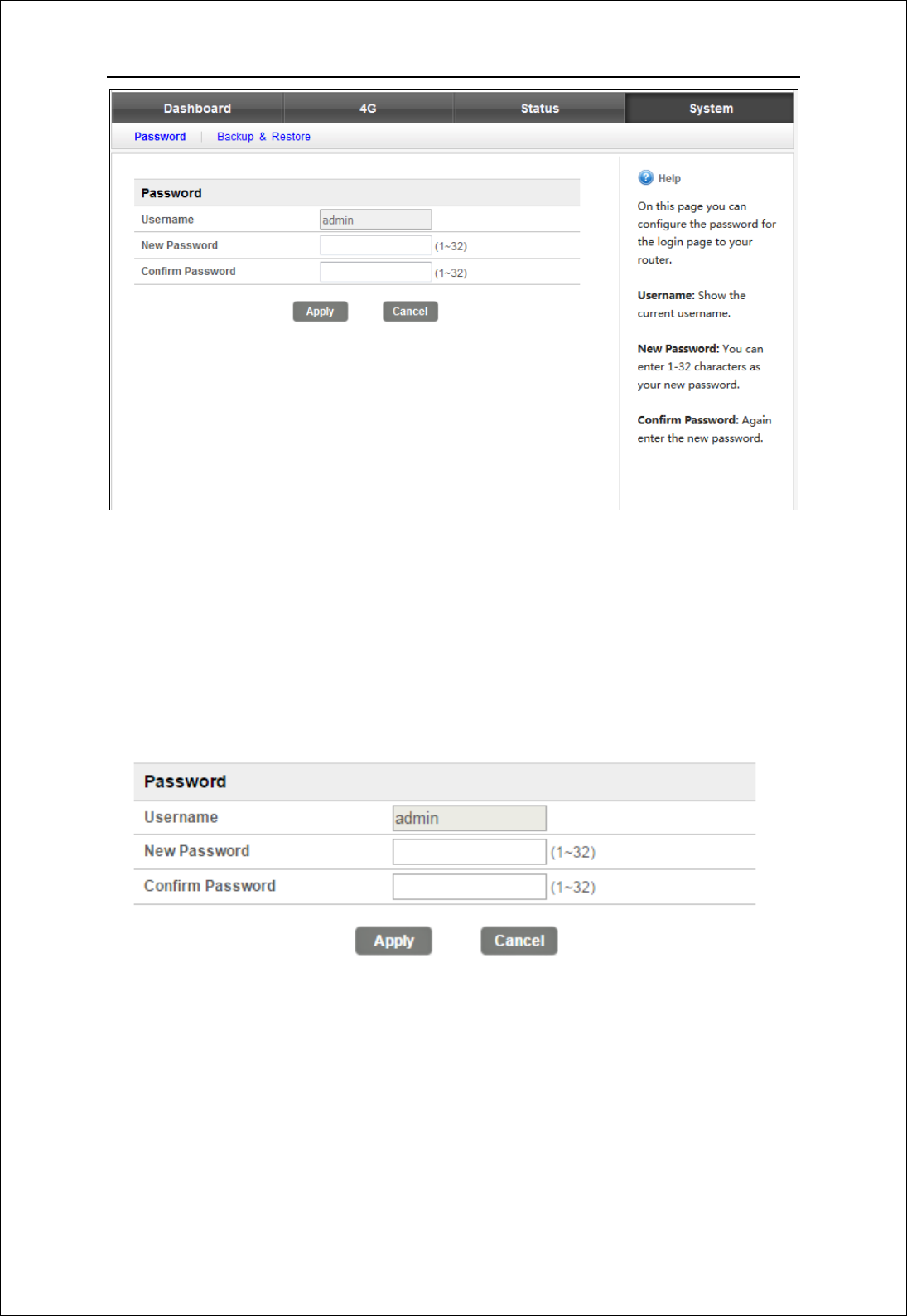 Dashboard,4G,Status and System. You can login to WebGUI as follows, and