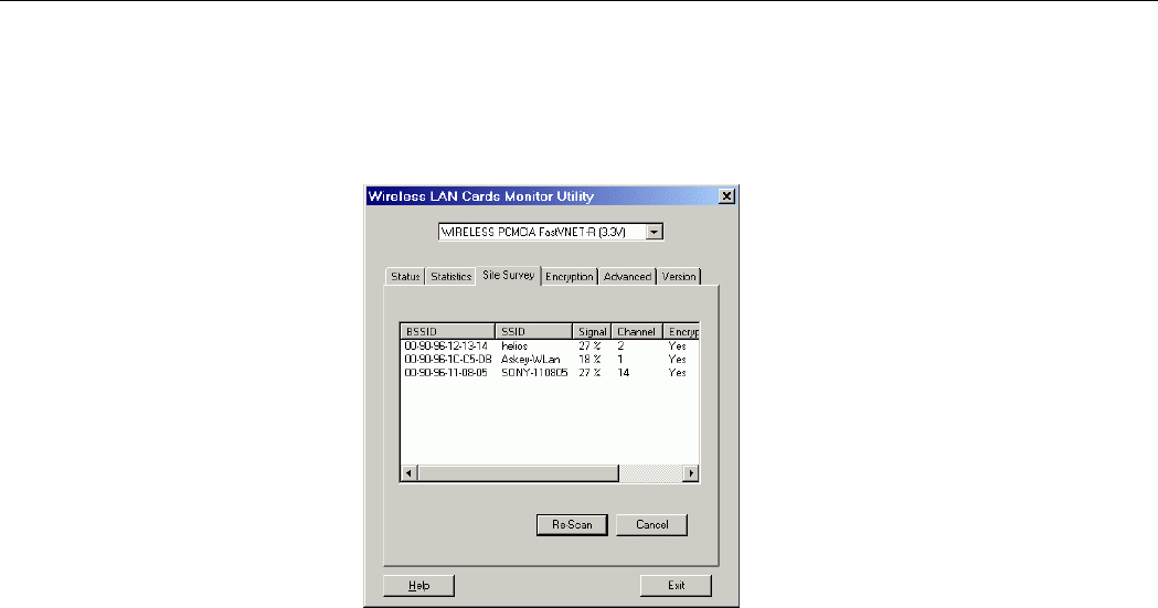 Figure 3-5 Wireless LAN Cards Monitor Utility – Site Survey ........................................................................ 30
