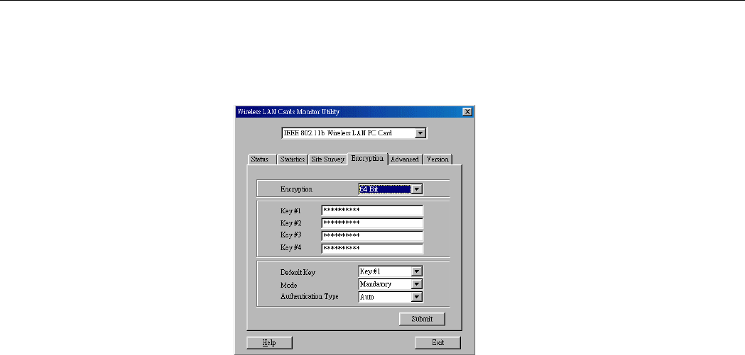 Figure 3-6 Wireless LAN Cards Monitor Utility – Encryption ......................................................................... 32