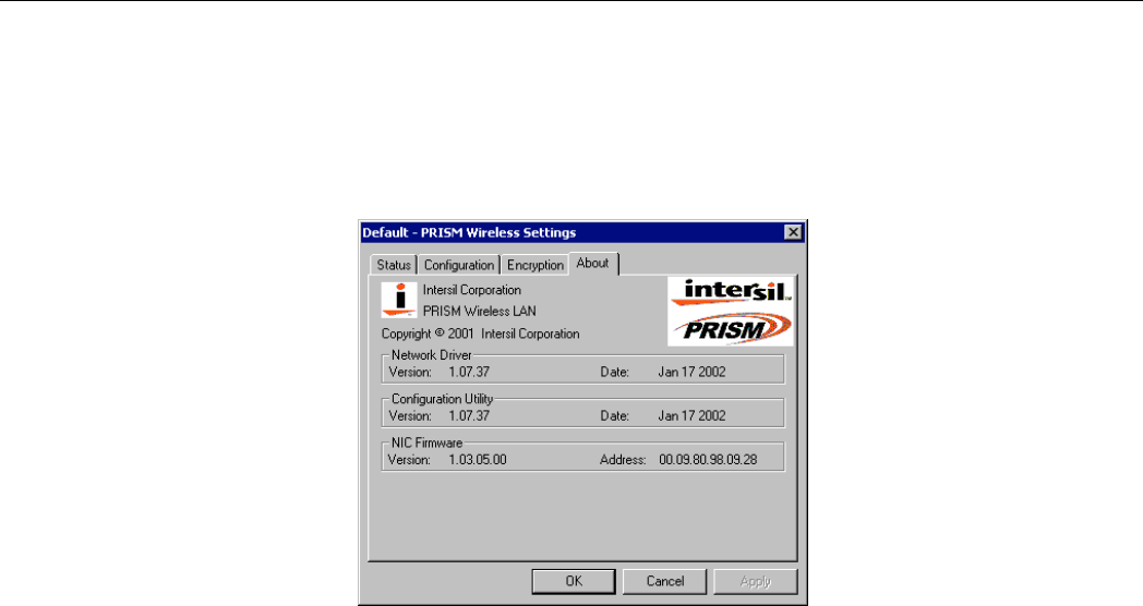Figure 3-5 PRISM Wireless Settings Utility – Version Tab .................................................................................. 21