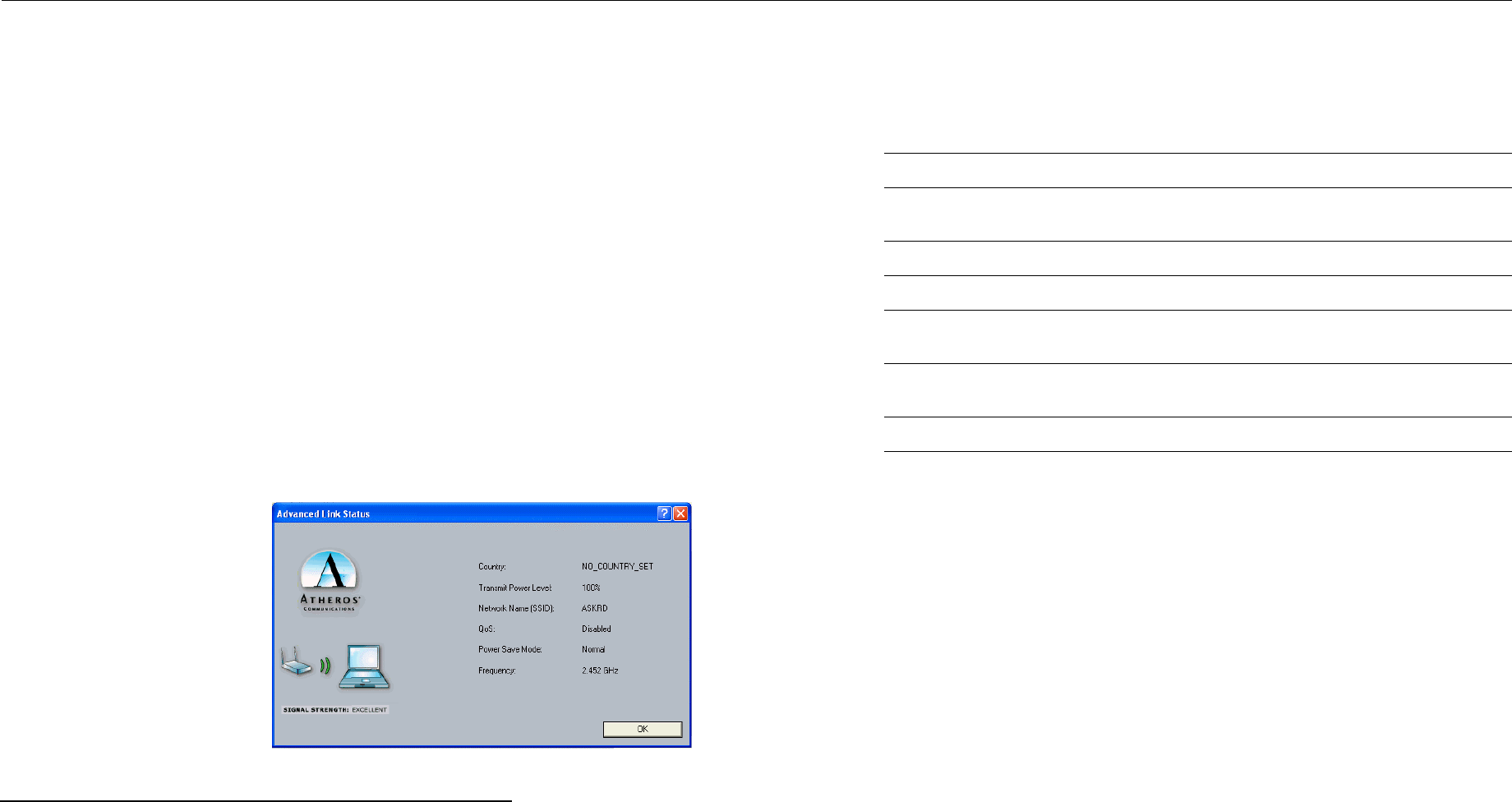 4. The country selection takes effect immediately. Use the Atheros Client Utility to verify the selected country by looking at the Advanced information on the Link Status tab.