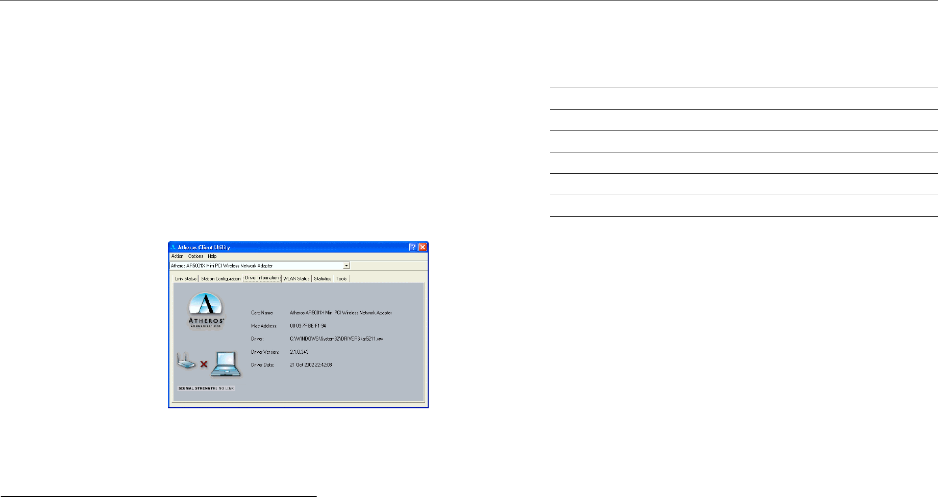 Atheros Client Utility Help Launch the Atheros Client Utility Help.