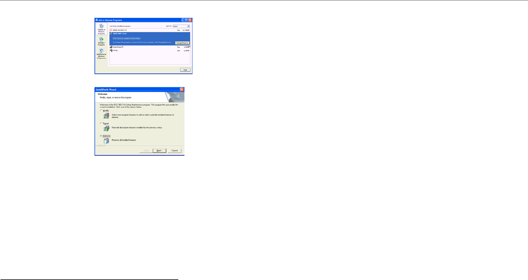3. Highlight IEEE 802.11a/b from the list and then click Change/Remove.