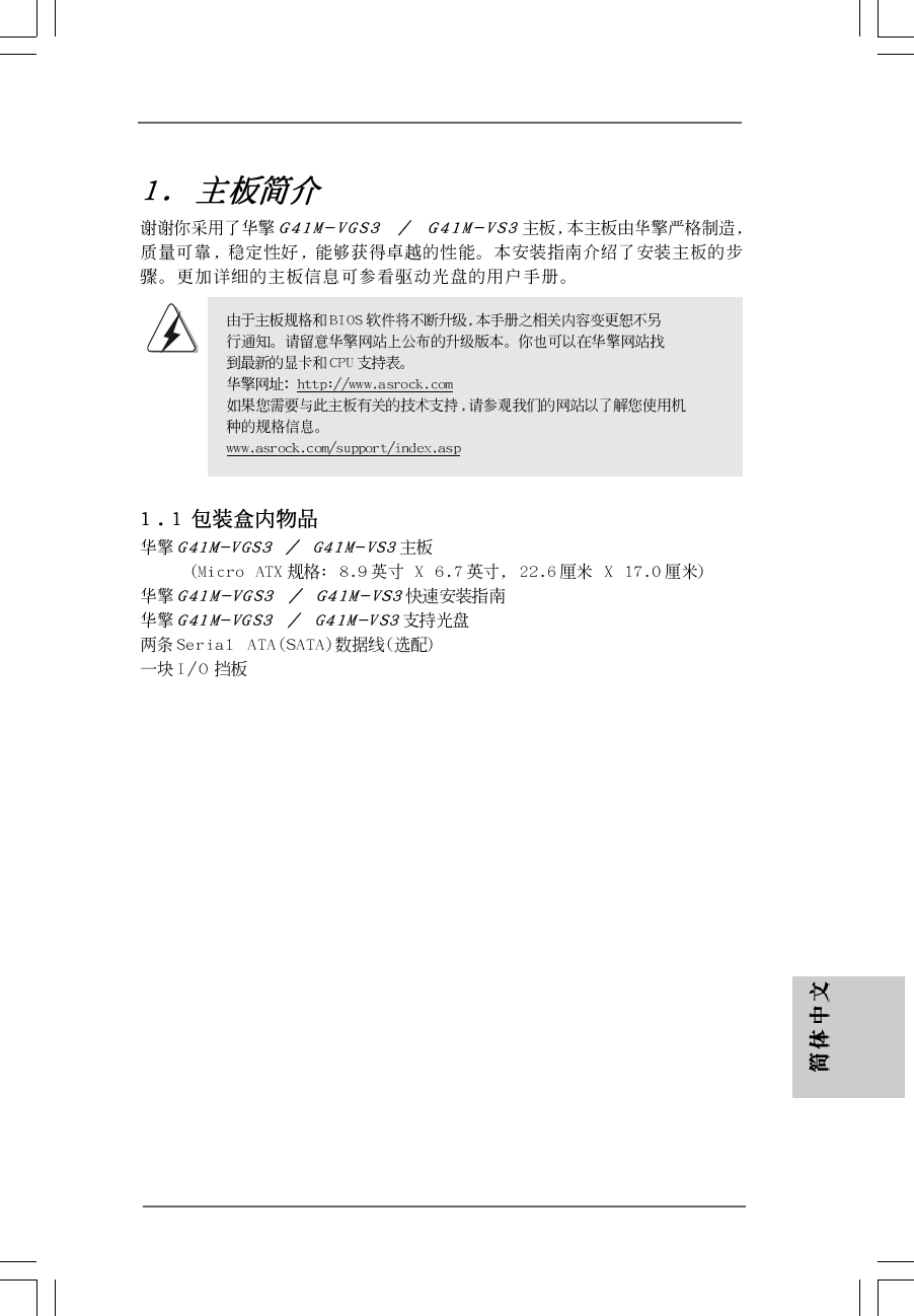 Asrock G41M Vs3 R2 0 Quick Start Guide VGS3_G41M R2.0_QIG_ASR.p65