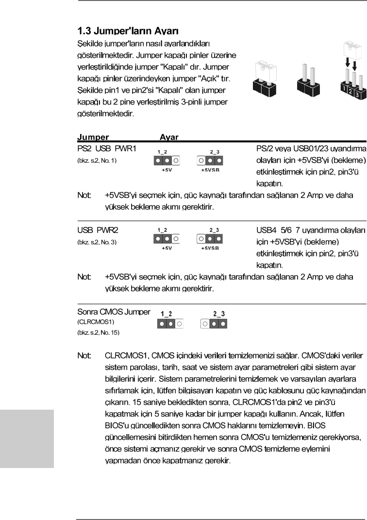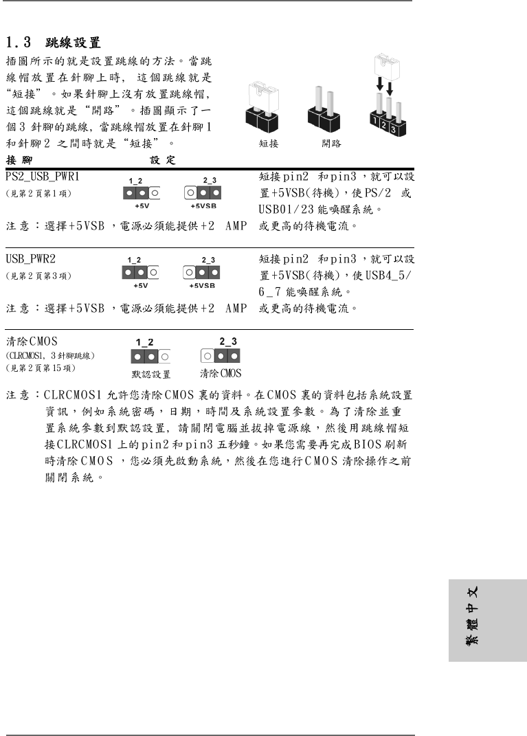 1 PS2_USB_PWR1 Jumper 15 Clear CMOS Jumper (CLRCMOS1)