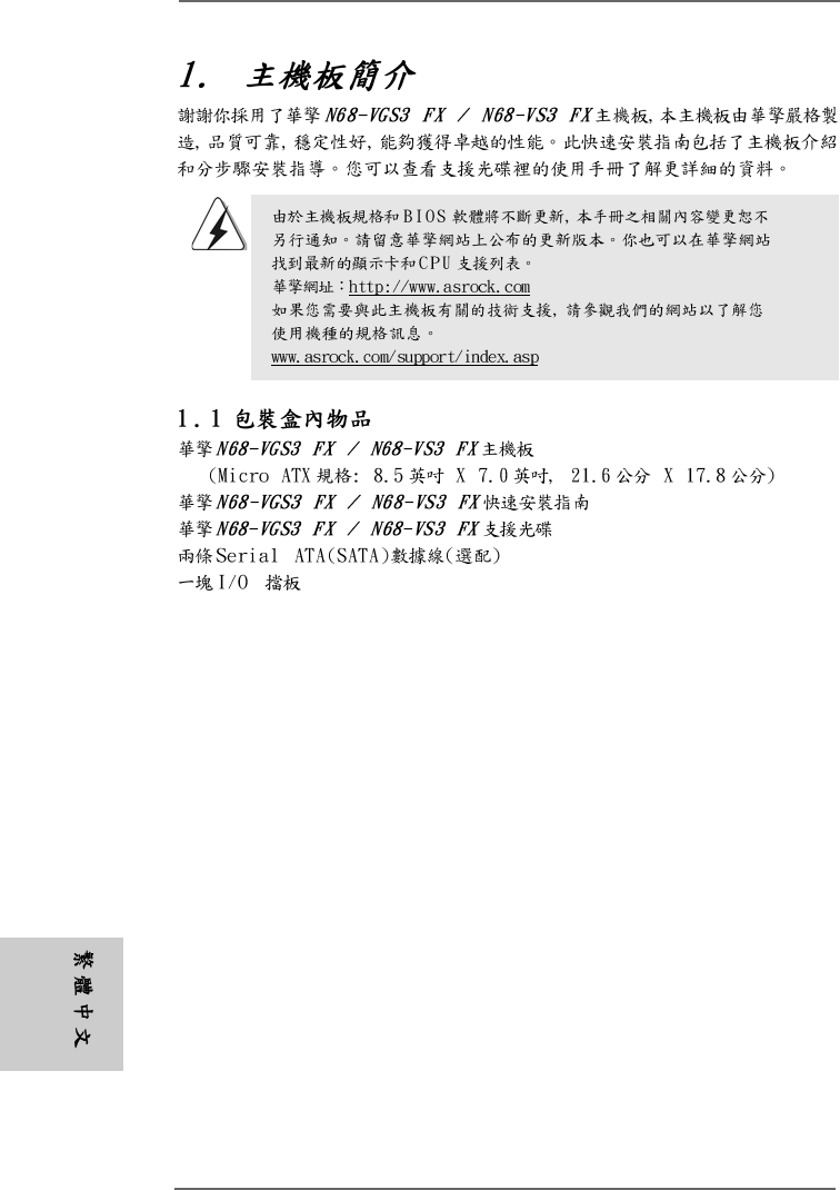 Asrock N68 Vgs3 Fx Quick Start Guide FX_N68 VS3 FX_QIG_ASR.p65