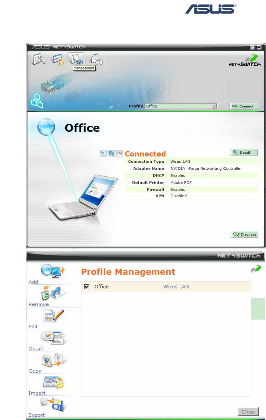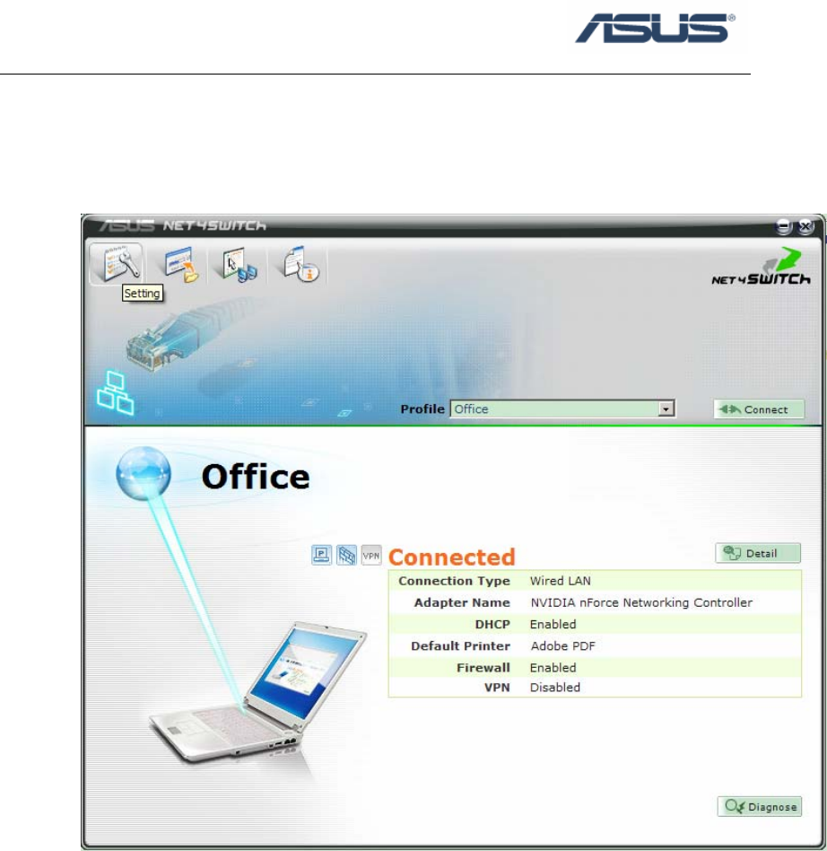 2. Click Start \ All Programs \ ASUS Utility \ Net4Switch \ ASUS Net4Switch