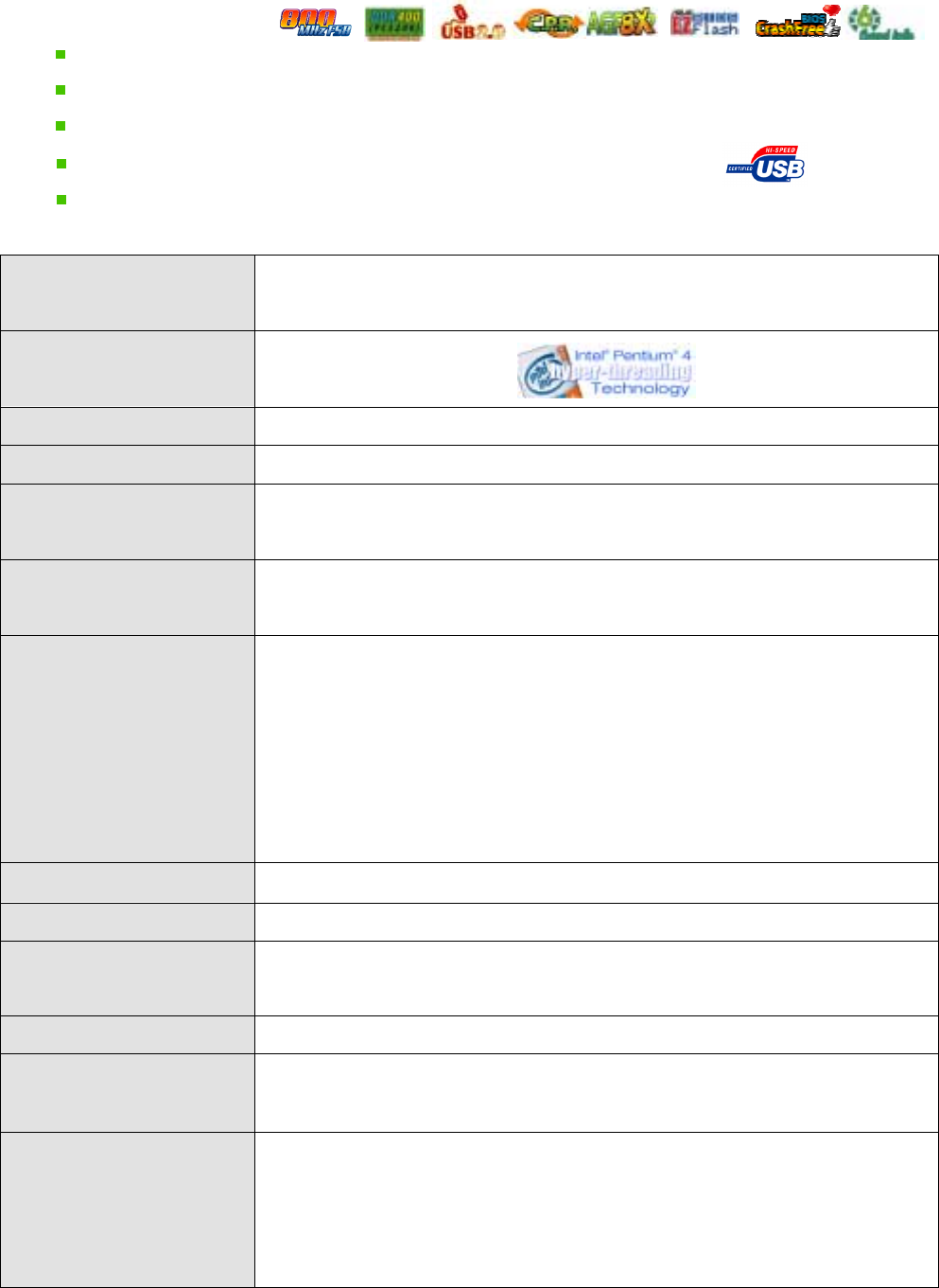 •  Socket 478 On-die 512/256KB L2 Cache with full speed (Hyper-Threading Technology)