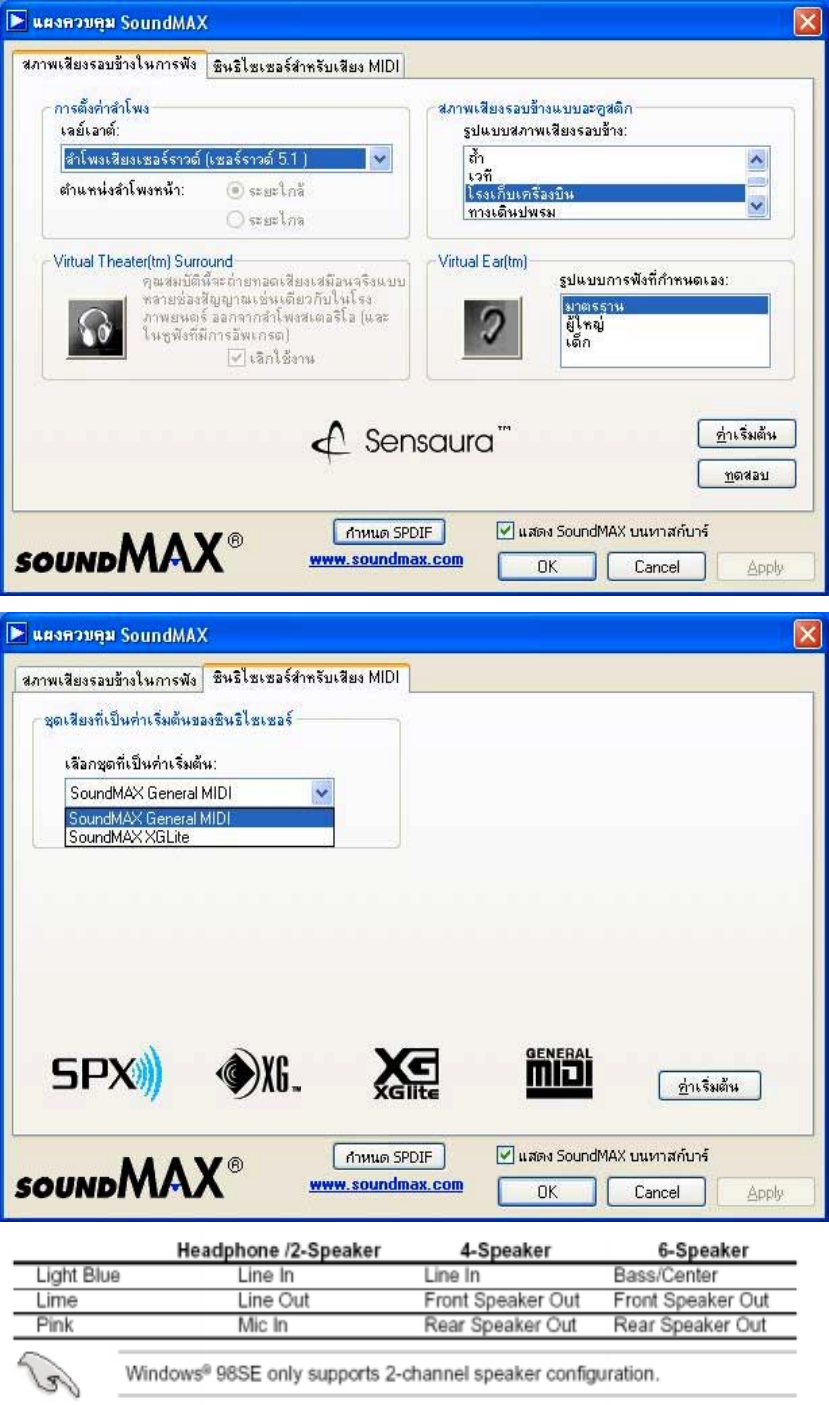 SoundMAX ADI AD1888 6-Channel AC’97 Audio Codec  (การตั้งคาลําโพงใหม ตองรีสตารทเครื่องใหมทุกครั้ง)