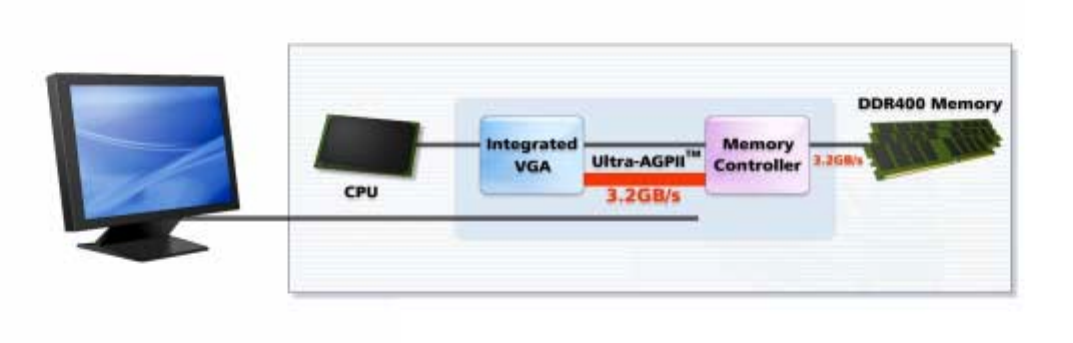 -  Support VGA On-board SiS Real256E Share Memory (Ultra-AGPII™ Technology) up to 3.2 GB/s with DDR400