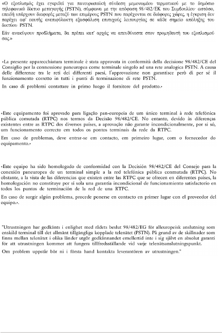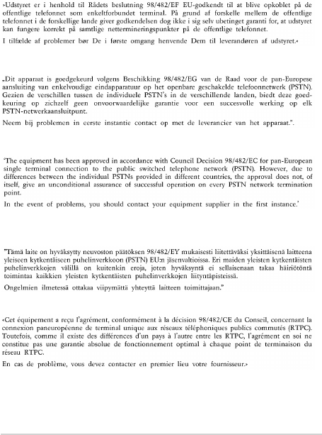 - Aggrément CTR 21 (pour les ordinateurs portables dotés d’un modem intégré)