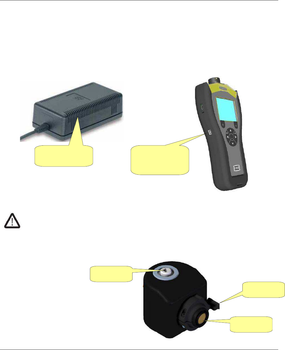 The external power supply provides power to the instrument, and it also charges the battery when the