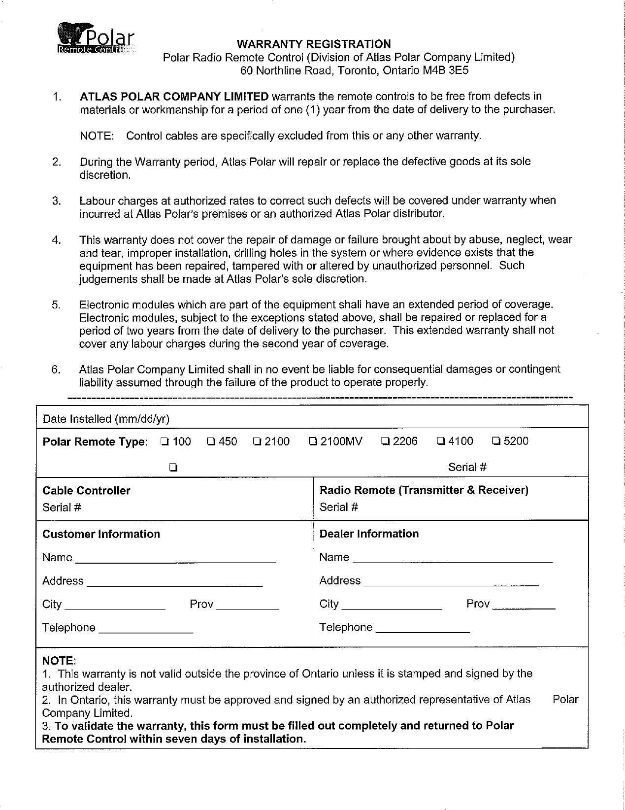 Atlas Polar Company Limited CONTROLS HYDRAULIC CRANES USING FHSS IN 902-928 MHZ USERS MANUAL