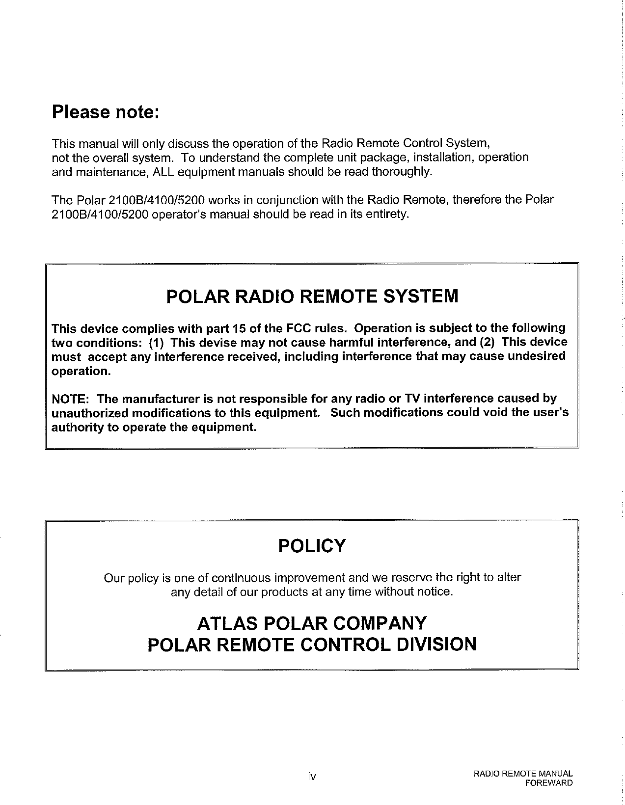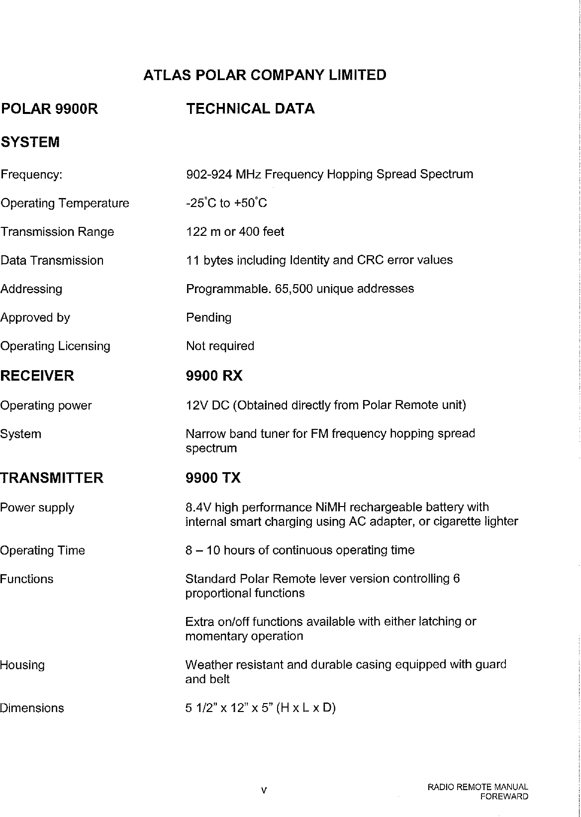 Atlas Polar 9900R CONTROLS HYDRAULIC CRANES USING FHSS IN 902-928 MHZ User Manual USERS MANUAL