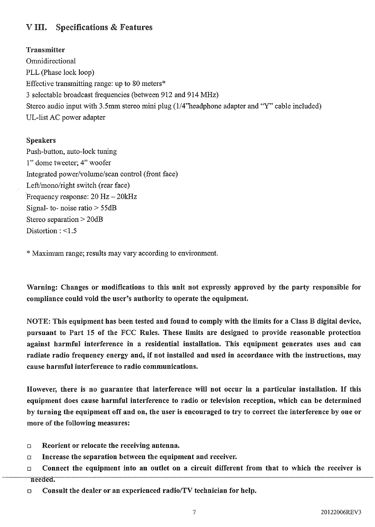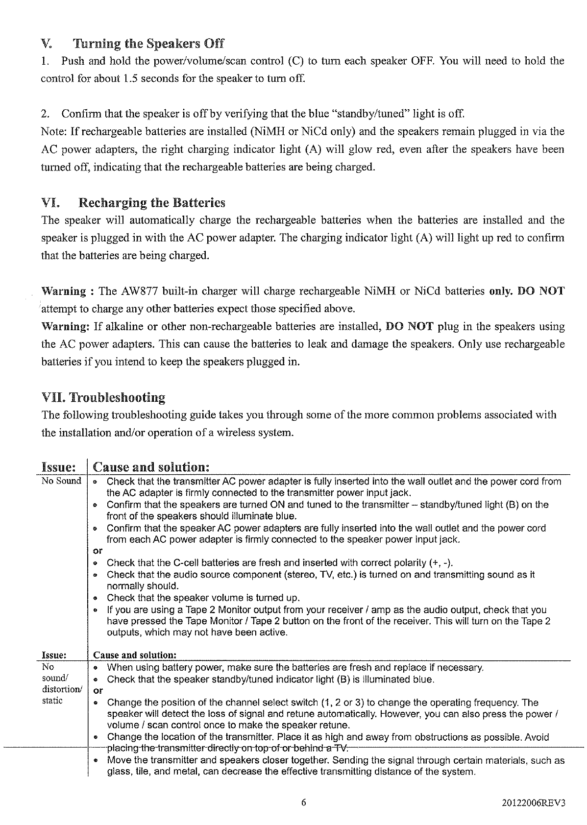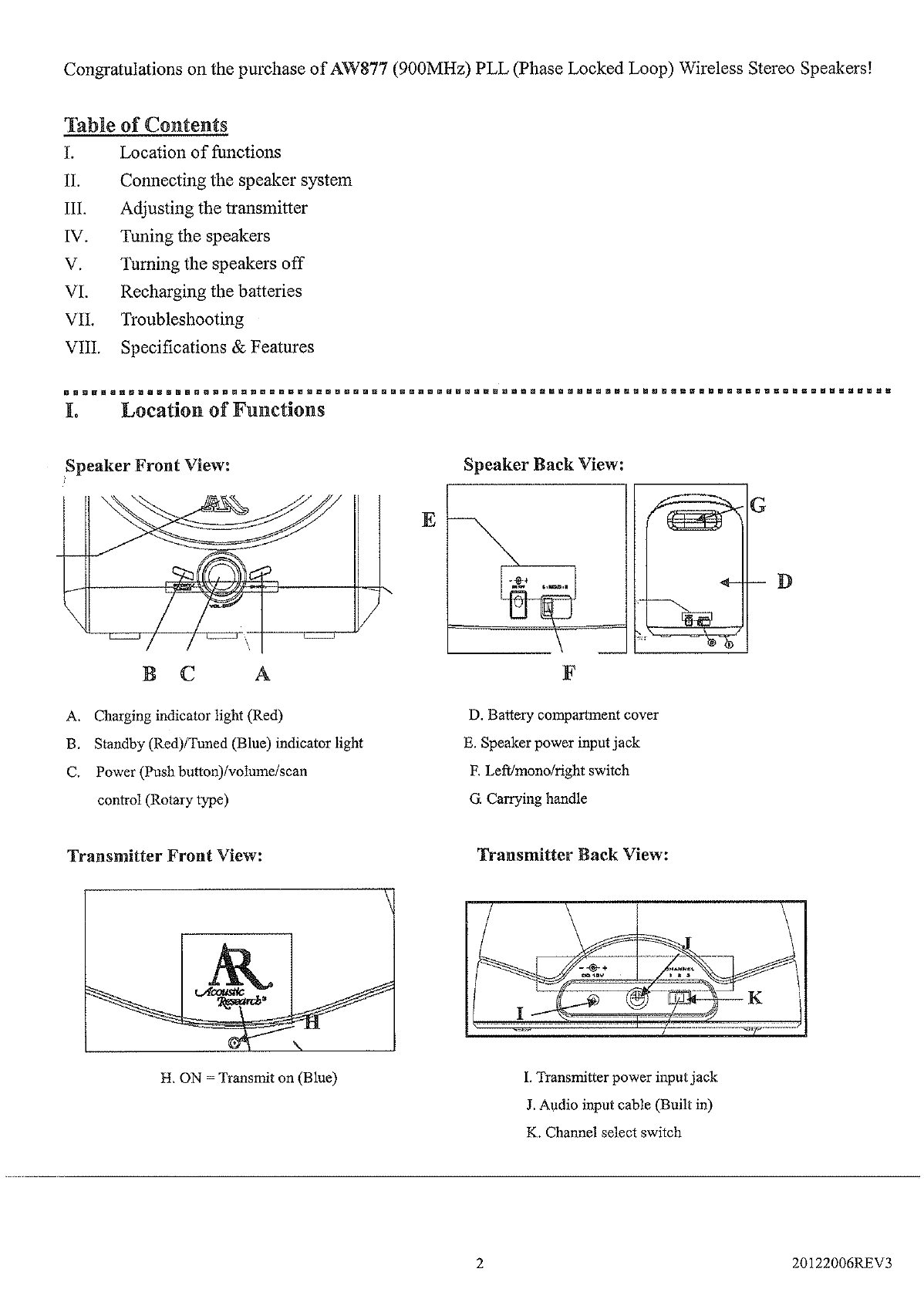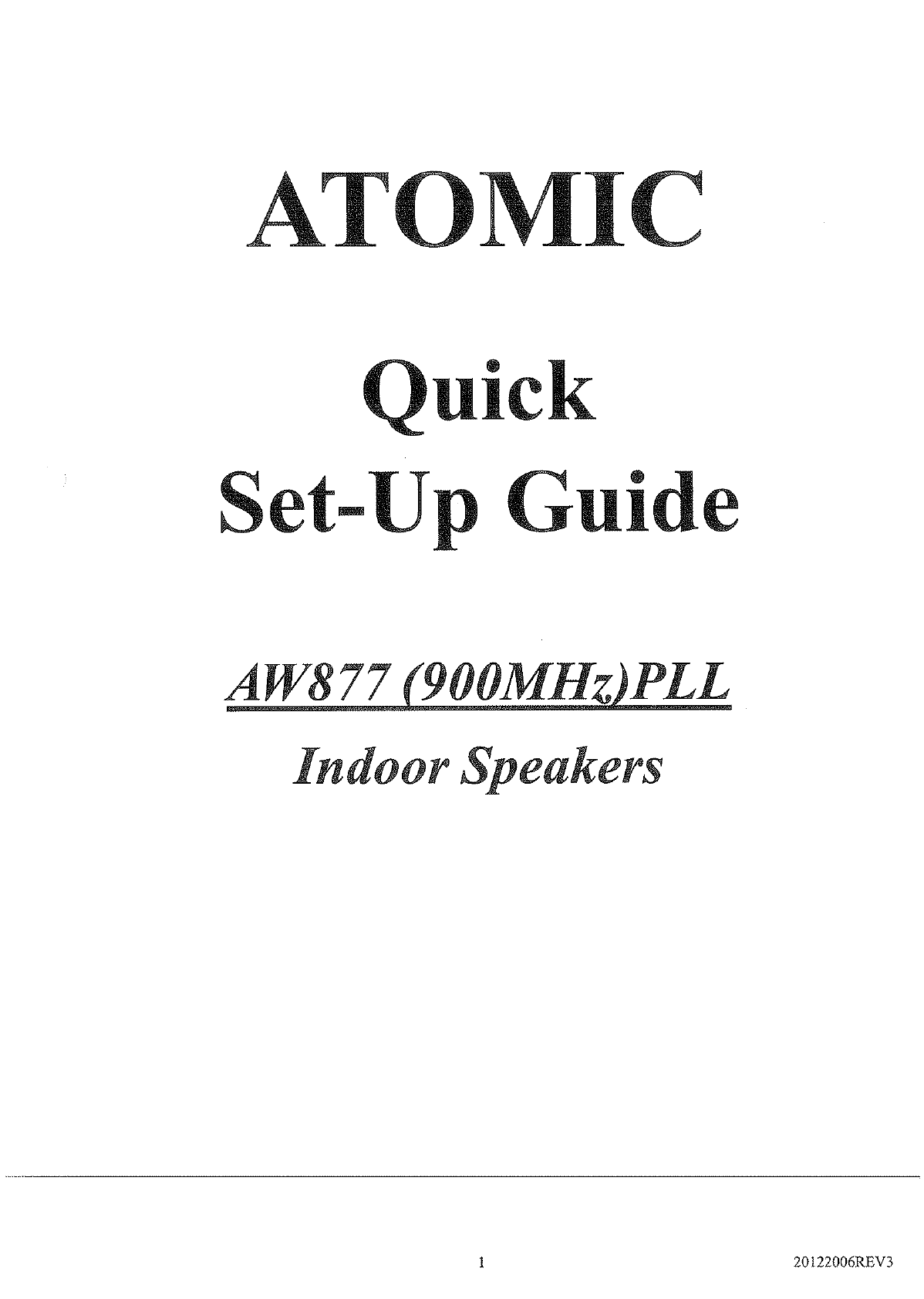 Atom AW877 900MHz Indoor Wireless Speaker Receiver User Manual